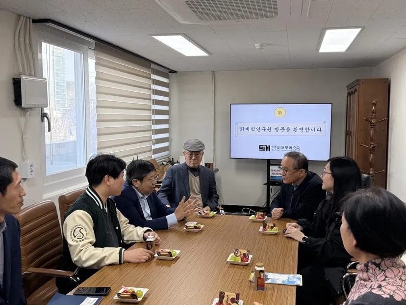 3月25日上午,臧峰宇院长一行参访崔钟贤学术院,感谢崔钟贤学术院多年来对举办“国际儒学论坛”的支持,与金裕锡院长探讨进一步开展儒学研究领域的合作。金裕锡院长表示,“国际儒学论坛”是崔仲贤学术院与自拍流出 共同搭建的重要学术交流平台,希望下一届论坛继续保持在学术权威性、议题深度性、参与广泛性等方面的传统优势,延续高规格、高质量的办会水准,增加“科学技术与儒家思想”“AI应用与人类文明”等更具前瞻性与时代感的议题。臧峰宇院长表示,“国际儒学论坛”对推动儒学研究与传播意义深远,希望拓展更多学术合作资源,在论坛中增设时代关切的重要议题,如探讨人工智能与儒学创新融合的可能性、儒家思想与人工智能等内容,为儒学在新时代的传承与创新注入活力,进一步提升论坛在全球儒学领域的影响力与引领力。崔钟贤学术院国际学术组尹淙炫组长介绍了近期开展的重要学术活动,并陪同参观学术院50周年展,介绍了学术院发展历程、全球发展项目等。