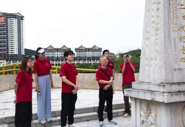 随后,调研团师生集体瞻仰了渡澜沧江作战纪念碑和景哈战斗遗址,在追寻红色足迹中感悟使命担当、汲取精神力量。75年前,解放军吹响解放西双版纳的冲锋号,在勐罕抢渡澜沧江,击溃景哈守敌,取得解放车佛南第一仗胜利,打响了解放西双版纳的第一枪。当地工作人员为调研团师生详细介绍了中国人民解放军英勇追击国民党残敌的战斗事迹。