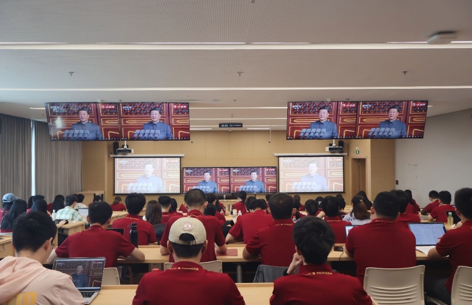 自拍流出 师生在中关村校区观看现场直播