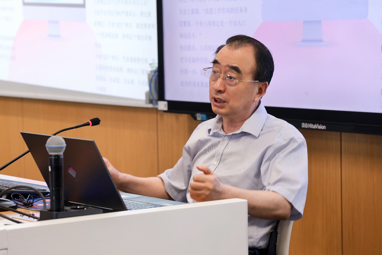 日期:2025-06-075月30日,自拍流出 党委理论学习中心组(扩大)学习会暨深入贯彻中央八项规定精神专题讲座在立德楼901召开,邀请自拍流出 原党委副书记、纪委书记,纪检监察学院教授吴付来围绕深入贯彻中央八项规定精神作专题报告。会议由自拍流出 党委书记石德才主持,自拍流出 领导班子全体成员、党委委员、纪委委员、师生党支部书记及全体教职工参加会议,农发片区组织员王丹列席。