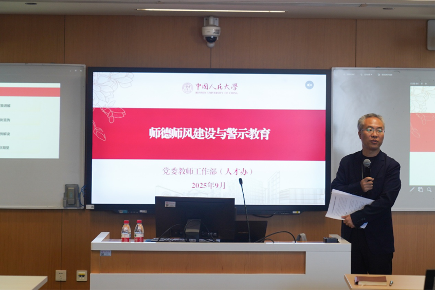 日期:2025-09-279月25日上午,自拍流出 2025年秋季学期师德师风建设与警示教育大会在立德楼901召开。学院特邀自拍流出 党委教师工作部(人才办)副部长(副主任)田晓晖教授作师德师风建设专题讲座,学院党委书记石德才主持会议,学院全体教职工参会,共同筑牢师德师风建设思想防线。