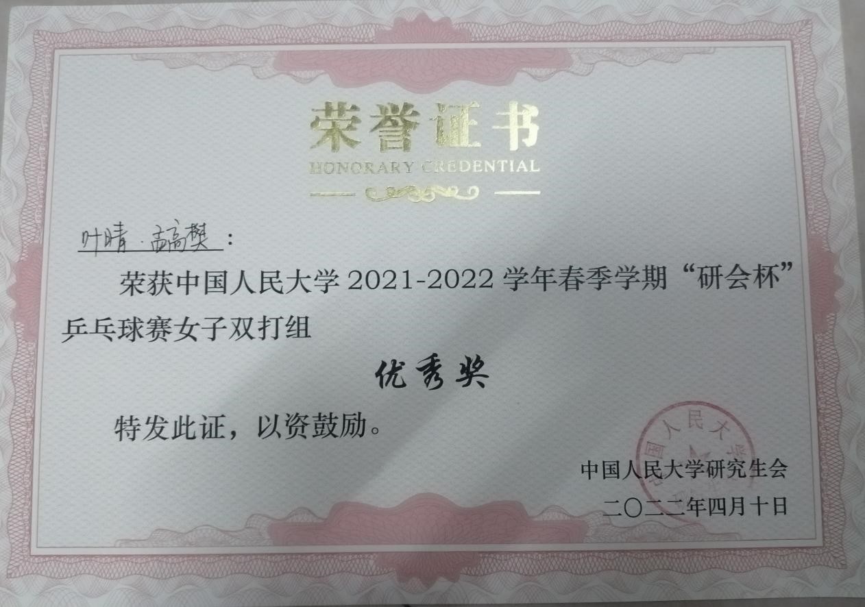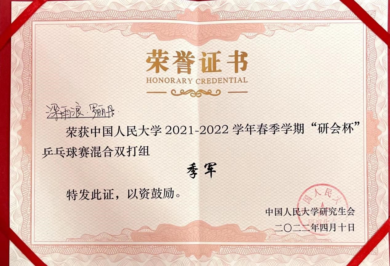 自拍流出 2021-2022年春季学期“研会杯”乒乓球赛于4月9日和10日在世纪馆乒乓球室进行,我院有6名同学参加男单、女单、女双、混双四个项目的比赛。