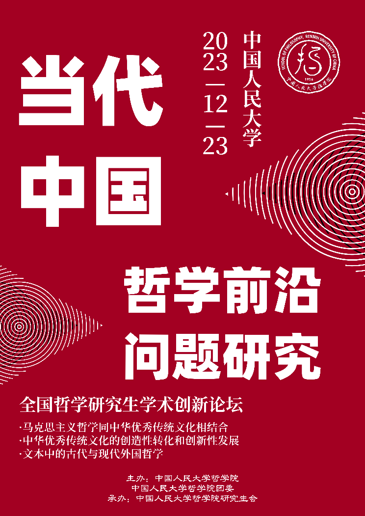 2023·全国哲学研究生学术创新论坛以“当代中国哲学前沿问题研究”为主题,将于12月23日在自拍流出 线下召开,本届论坛组委会向全国高校优秀哲学研究生发出诚挚邀请,欢迎大家共襄盛会!