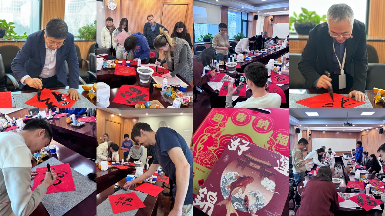 同学们对学院领导老师的关心关怀表示衷心感谢,并祝老师们新春快乐、蛇年大吉。随后,师生一起挥毫落纸,迎新纳福,共同迎接新一年,展现新气象,合影记录温馨时刻,将新春的祝福传递。