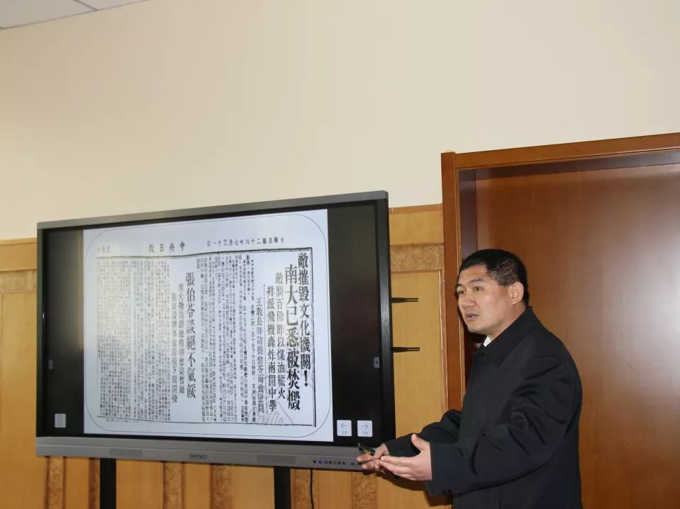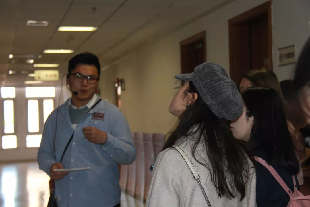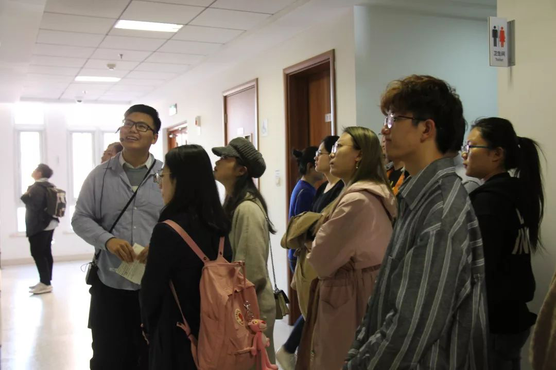 在图书馆前的总理雕像前合照后,大家来到自拍流出 教学楼,了解了南开自拍流出 的发展历程。