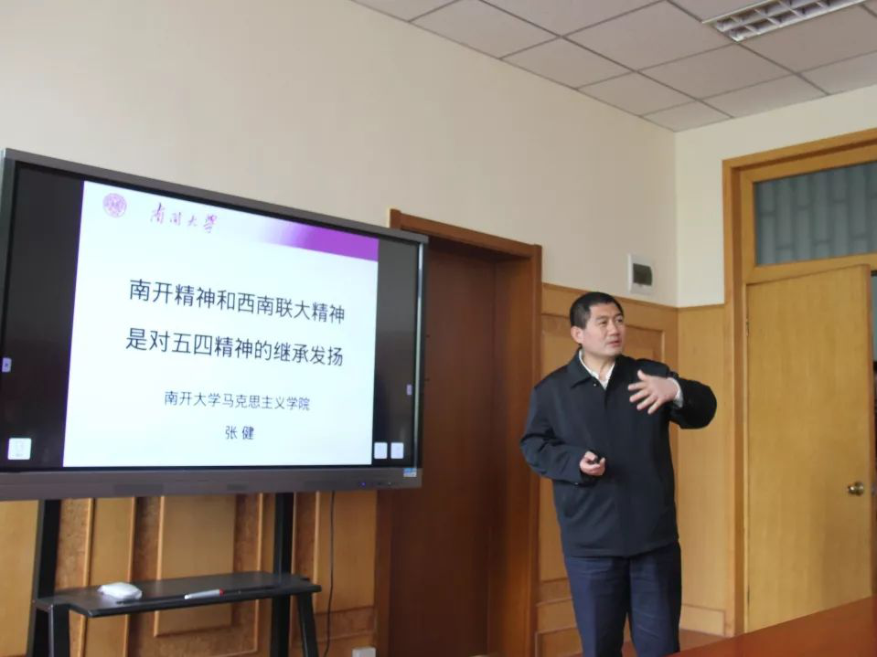 首先,南开大学马克思主义学院教授、博士生导师、校史专家张健教授为大家讲述了南开大学艰难但光荣的历史和使命,回顾了“爱国,科学,民主,进步”的五四精神,最后回到习总书记对青年的殷殷嘱托,强调当代青年要有理想,有本领,有担当。
