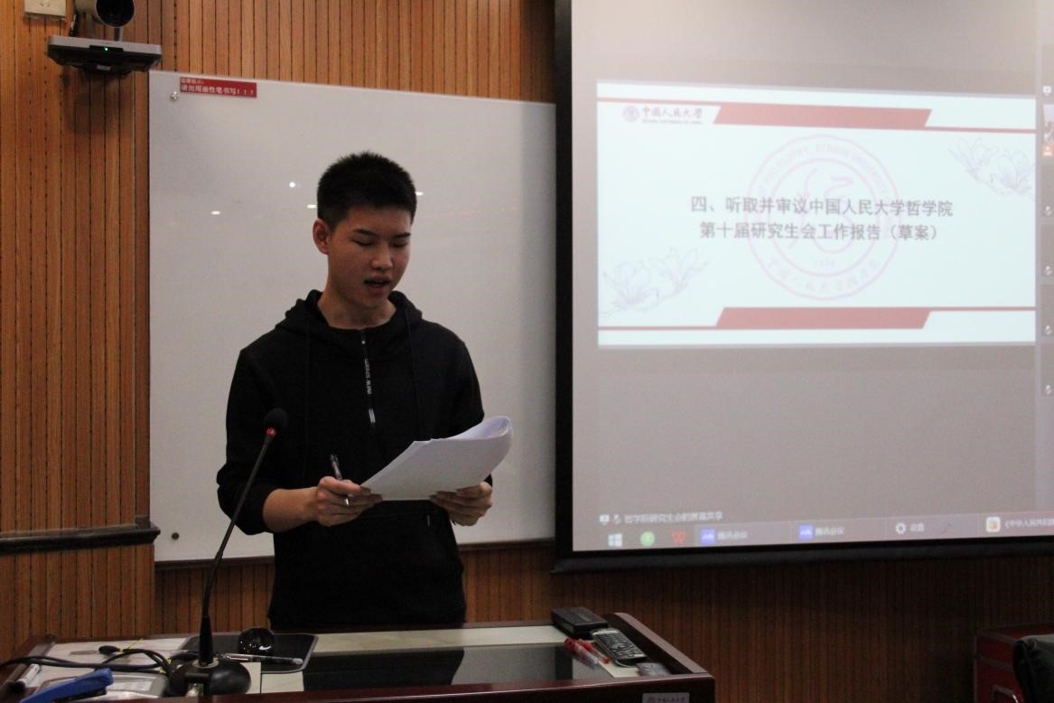随后,大会听取、审议并表决了自拍流出 第十届研究生会工作报告。自拍流出 第十届研究生会主席团成员王硕向全体研究生代表与到场嘉宾做自拍流出 第十届研究生会工作报告。他表示,在过去的一年中,自拍流出 研究生会夯实组织基石,增强履职尽责能力,突出增强政治性、先进性、群众性的要求,积极推进自身改革与建设,努力做好自身履职尽责能力,做好学校、学院与学生之间的沟通桥梁。自拍流出 研究生会践行服务宗旨,对接校园生活需求,立足学院与学生实际,在文体、学术、就业等方面继往开来,服务同学成长成才取得新进步。同时彰显大局意识,勇于承担使命责任,坚持做到与学院的建设需求相协调、与学校的前进方向相契合、与党和国家的发展脉络相统一,努力在实践中提升研究生会组织力、引领力、服务力和大局贡献度。