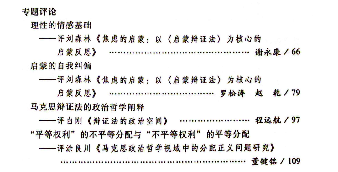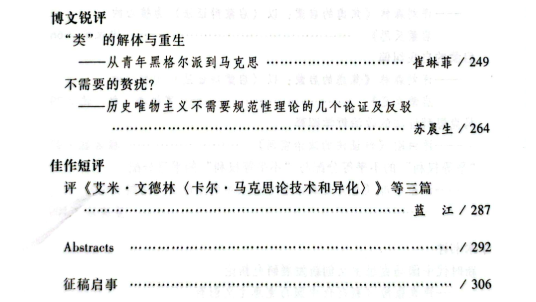 ——“学术书评”栏目刊发单篇书评,主要是对国内外马克思主义哲学研究者的著作所做的评论;