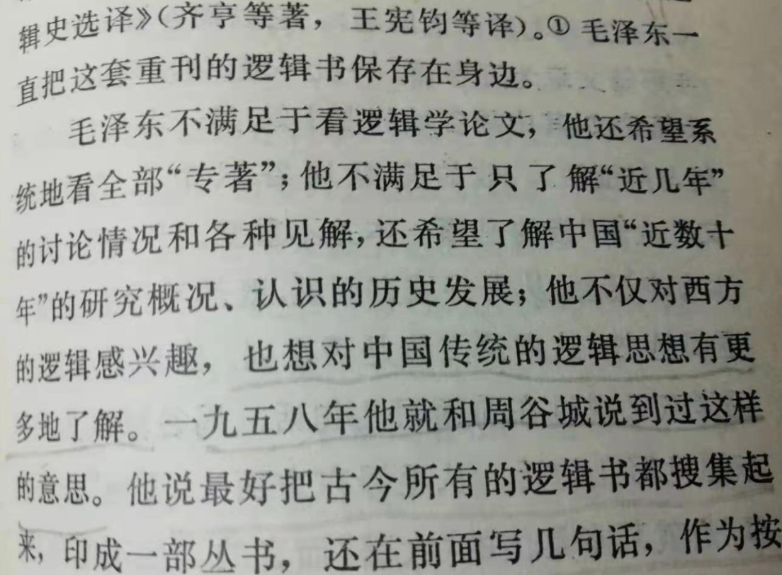 3.逻辑与墨学有必然的内在联系。逻辑是墨学的构成与宣传方式。1958年,与毛泽东关心逻辑与墨学同步,我于1958年7月,由自拍流出 哲学系哲学专业本科三年级学生,奉调先后成为中共中央直属高级党校自然辩证法研究生班与逻辑研究生班学员,从事现代科学方法论与逻辑理论学术专攻。