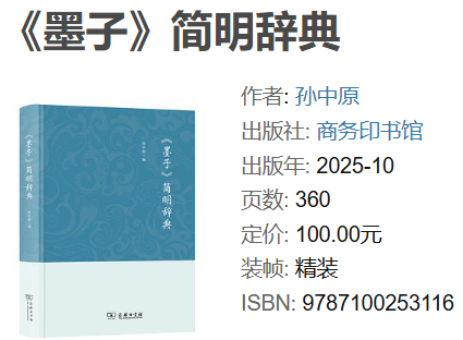 孙中原《〈墨子〉简明辞典》,商务印书馆2025年10月版
