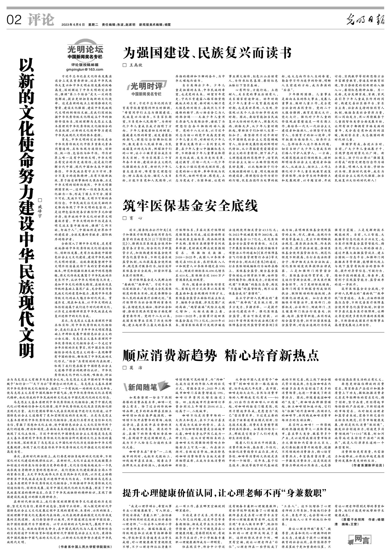 再次,在新时代新征程上,我们要更好担负起新的文化使命,不断深化对文化建设的规律性认识。在新时代,文化日益成为民族凝聚力和创造力的源泉与综合国力竞争的要素,文化自信越来越成为一个民族承载自身精神力量的思想标识。我们党把文化建设摆在全局工作的重要位置,立足中华民族伟大历史实践和当代实践,以历史主动精神彰显中华民族在走向复兴进程中的文化自我。不断推动马克思主义基本原理同中华优秀传统文化相结合,不断推动中华优秀传统文化创造性转化、创新性发展,筑牢中国式现代化的文化根基,彰显了中华民族最深层的精神追求,凸显了中华民族独特的精神标识,呈现了强国建设民族复兴的强大精神动力。