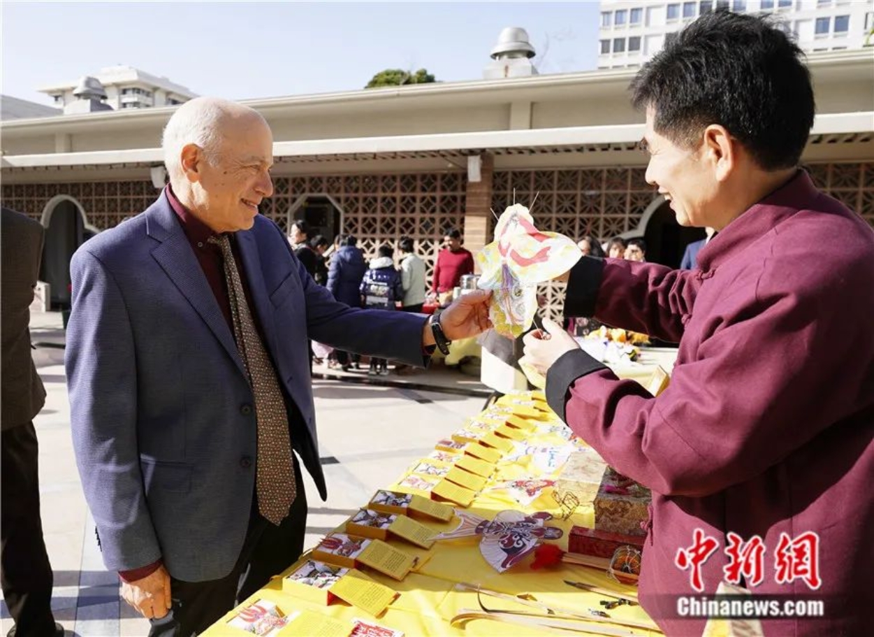2024年3月7日,“美美与共 好客山东”文化旅游推介活动在美国旧金山举行,来自山东的非遗项目潍坊风筝吸引嘉宾驻足。刘关关 摄