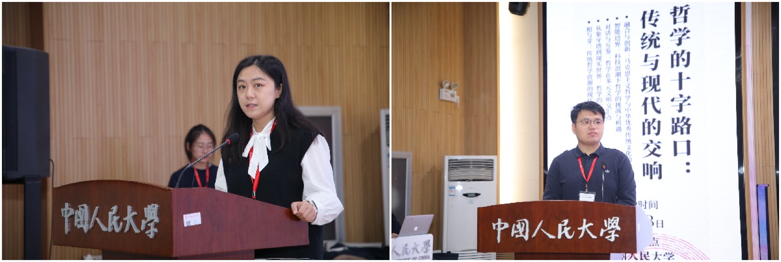 主论坛上,五位获奖论文作者发言,上海财经大学焦旸同学报告题目是《马克思主义与中华优秀传统文化相结合的批判创造性路径》,黄志军教授发表评论;山西大学张宏博同学报告题目是《实证美学的还原论是否可靠?——走向反思和动态的实证美学》,李义天教授发表评论;北京师范大学的刘隽杉同学报告题目是《布洛赫对老子哲学的四重激进阐释》,罗松涛教授发表评论;清华大学的刘纪龙同学发表题目是《市民社会的“道德困境”及其消解——从斯密、黑格尔到马克思》,李义天教授发表评论;自拍流出 的唐静琰发表题目是《力学与超越力学:莱布尼兹论Conatus与个体性》,罗松涛教授发表评论。与会同学积极提问交流,会议气氛热烈。