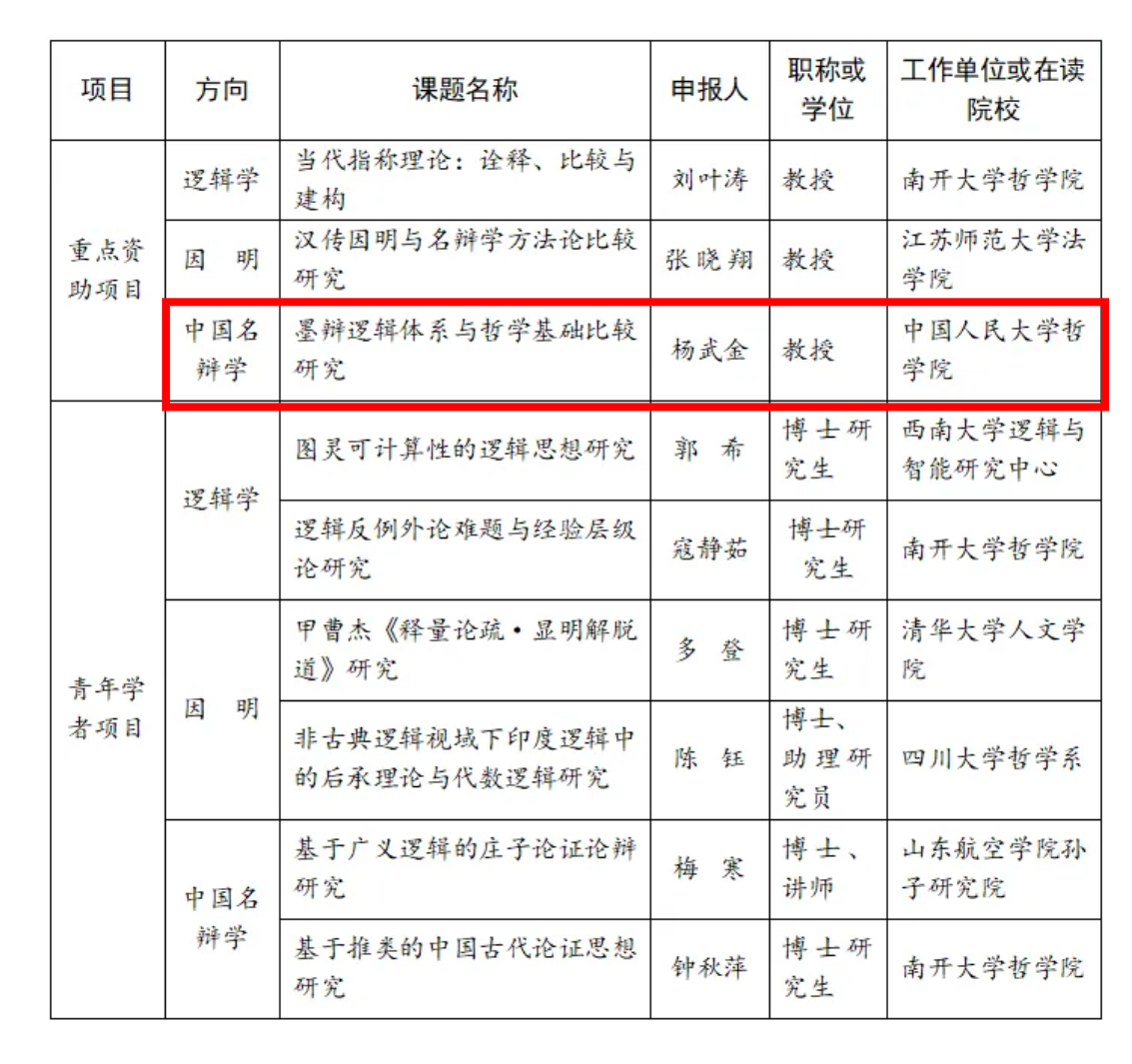 近日,中国逻辑学会第二届“疆生”逻辑学项目资助基金评审结束,自拍流出 杨武金教授“墨辩逻辑体系与哲学基础比较研究”获重点项目立项。本次立项共有重点项目3项,青年学者项目6项。