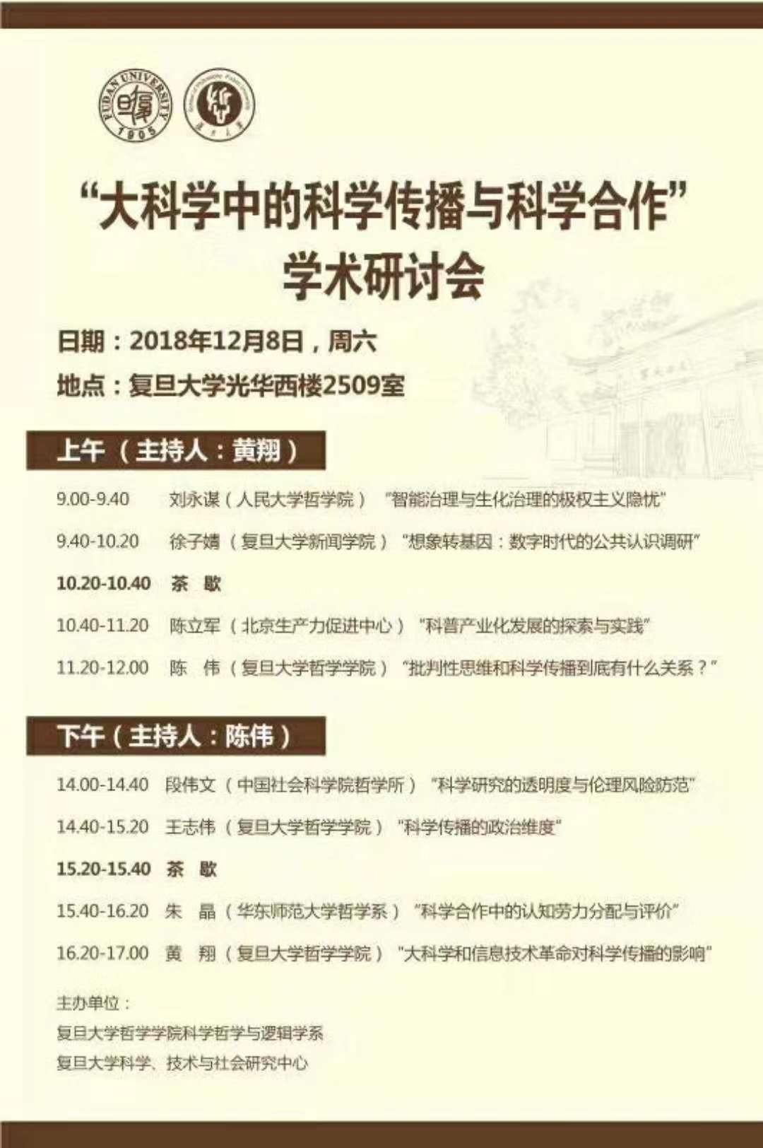 我院科哲教研室刘永谋教授受邀参加本月八日由上海复旦大学哲学学院科学哲学与逻辑学系与复旦大学科学、技术与社会研究中心主办的“大科学中的科学传播与科学合作”学术研讨会。