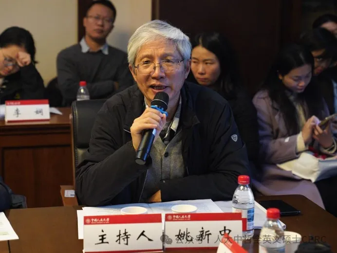 在李晨阳教授的主题演讲之后,姚新中教授作出了回应。首先,姚新中认为"Confucianism"能够包容"儒家"、"儒学"、"儒教"、"儒术"等丰富内涵。根据该书的内容建议书名还是以译为“儒学”为好。其次,姚新中教授提出了两个关键问题:第一是"重塑谁的儒学",第二是"为谁重塑儒学"。他强调,儒家哲学的重塑只有在新的语境中、在国际哲学学互动中才可以更好地彰显出原创性与当代性来。