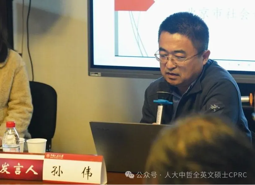 随后,北京市社会科学院孙伟研究员以“如何以比较哲学推动中国哲学研究?”为题,进行了系统的方法论反思。他全面梳理了当代比较哲学领域中三种具有代表性的研究方法,并以亚里士多德与荀子的辩证法比较为具体案例,深入阐释了比较哲学的实际操作路径。他指出,双向互鉴的比较研究,是推动中国哲学当代发展、参与世界哲学对话的重要路径。