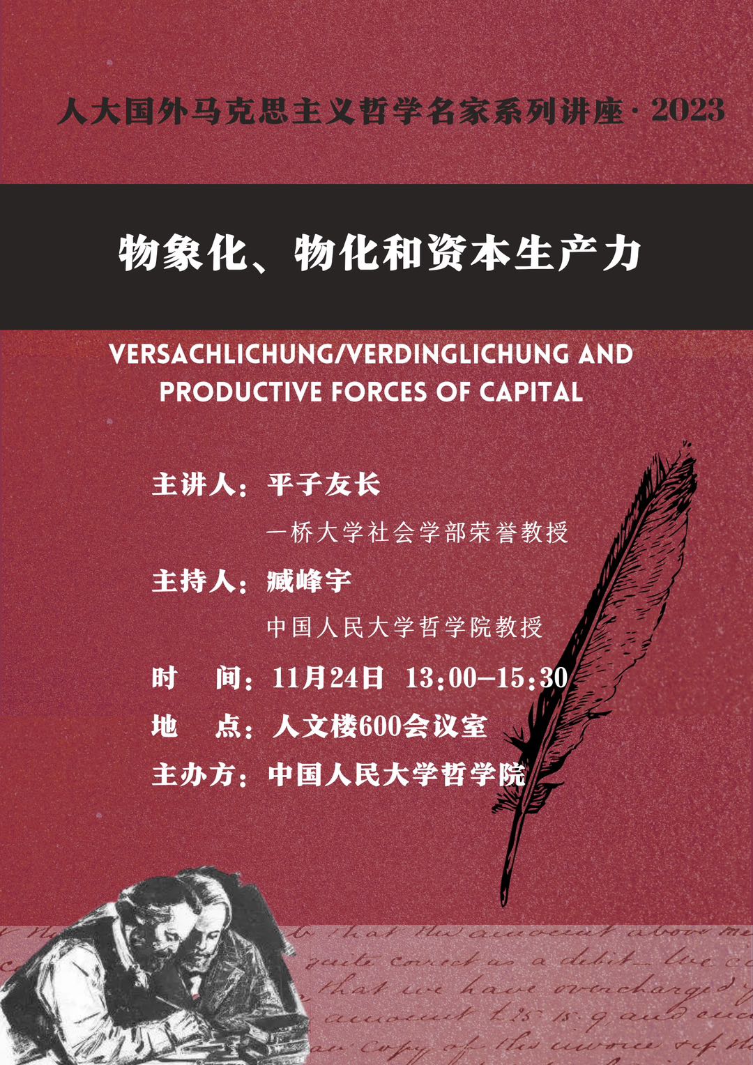 预告|平子友长|物象化、物化和资本生产力|人大国外马克思主义哲学名家系列讲座·2023