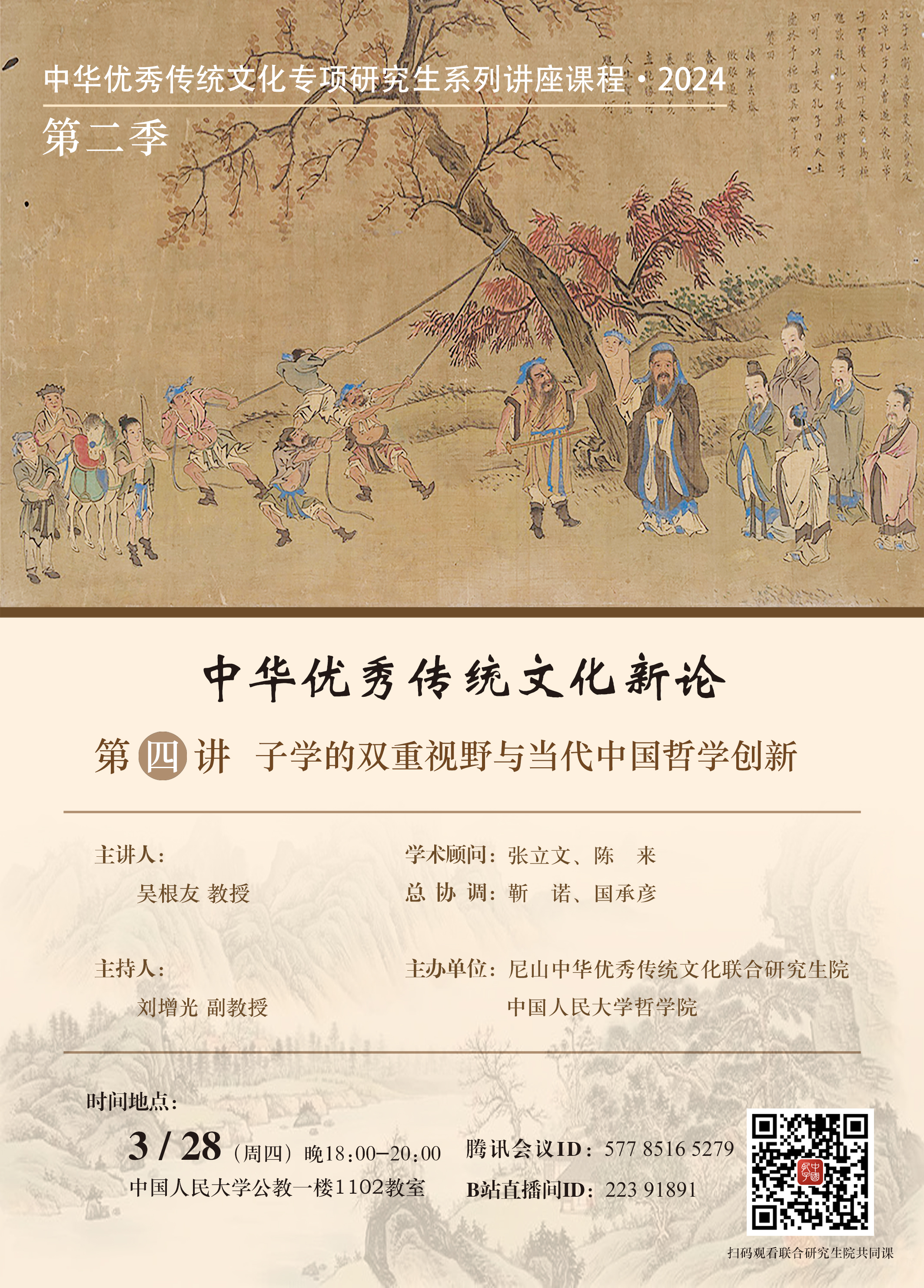 预告丨吴根友:子学的双重视野与当代中国哲学创新丨“中华优秀传统文化新论”系列讲座课程·2024