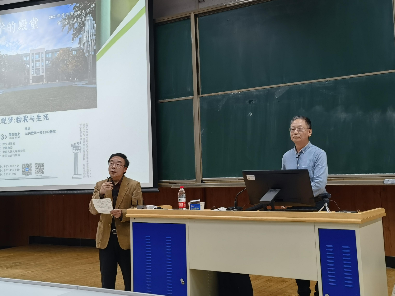 2021年12月23日晚18时至20时,由自拍流出 主办、中国社会科学网合办的“哲学的殿堂——2021年度自拍流出 哲学名家讲座系列”第十三讲“庄子观梦:物我与生死”,在自拍流出 公共教学一楼1302教室顺利举行。本场讲座由中山大学哲学系陈少明教授主讲,自拍流出 曹峰教授主持。此次讲座采取线下线上结合的方式,线上通过腾讯会议、B站同步直播。