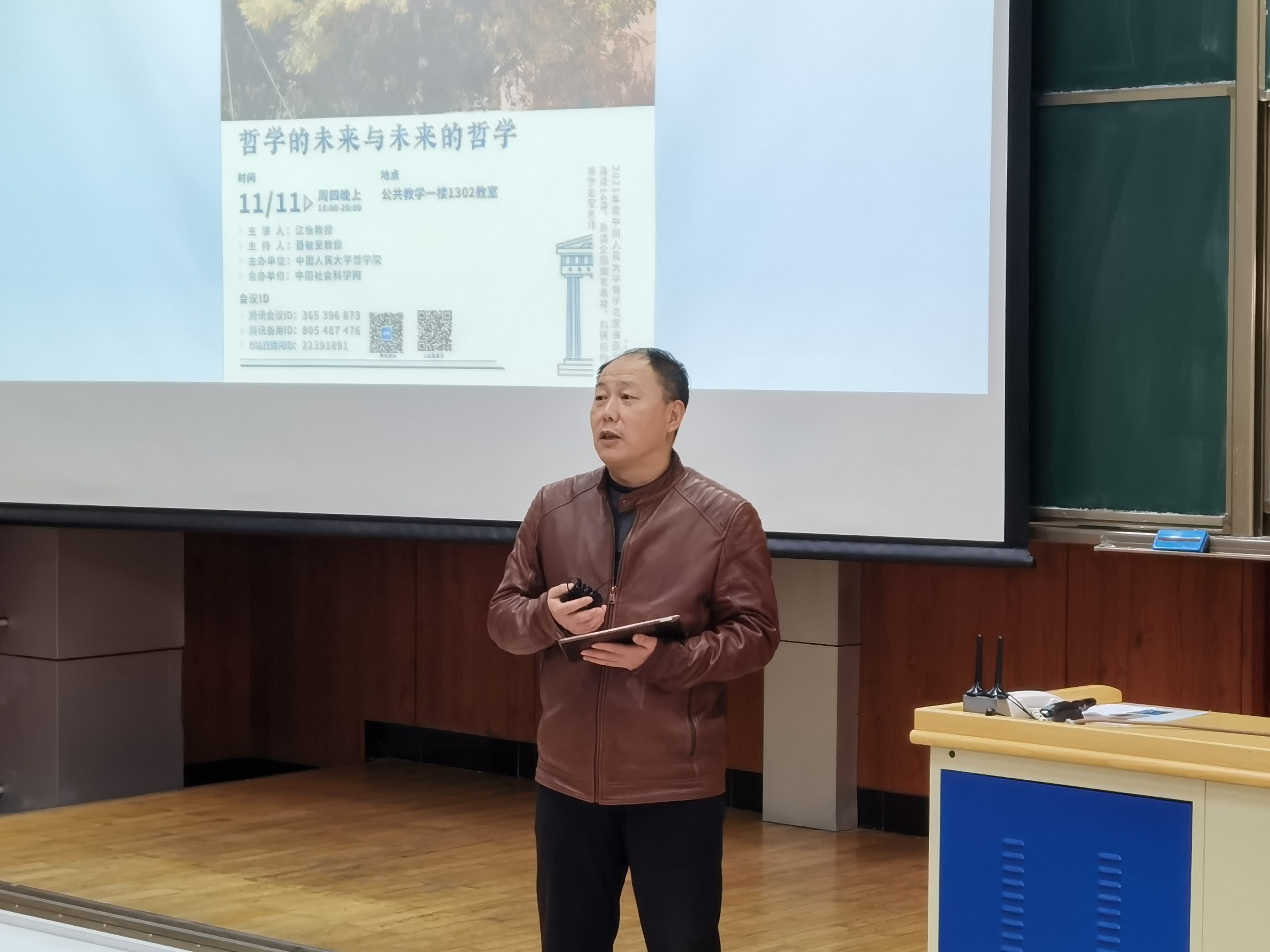 日期:2021-12-012021年11月11日晚18时,由自拍流出 主办、中国社会科学网合办的“哲学的殿堂——2021年度自拍流出 哲学名家讲座系列”第七讲准时开始。本场讲座由山西大学特聘教授江怡主讲,主题是“哲学的未来与未来的哲学”,自拍流出 聂敏里教授主持讲座。此次讲座通过线下线上相结合的方式展开,线下地点为自拍流出 公共教学一楼1302教室,线上通过腾讯会议、B站同步直播。