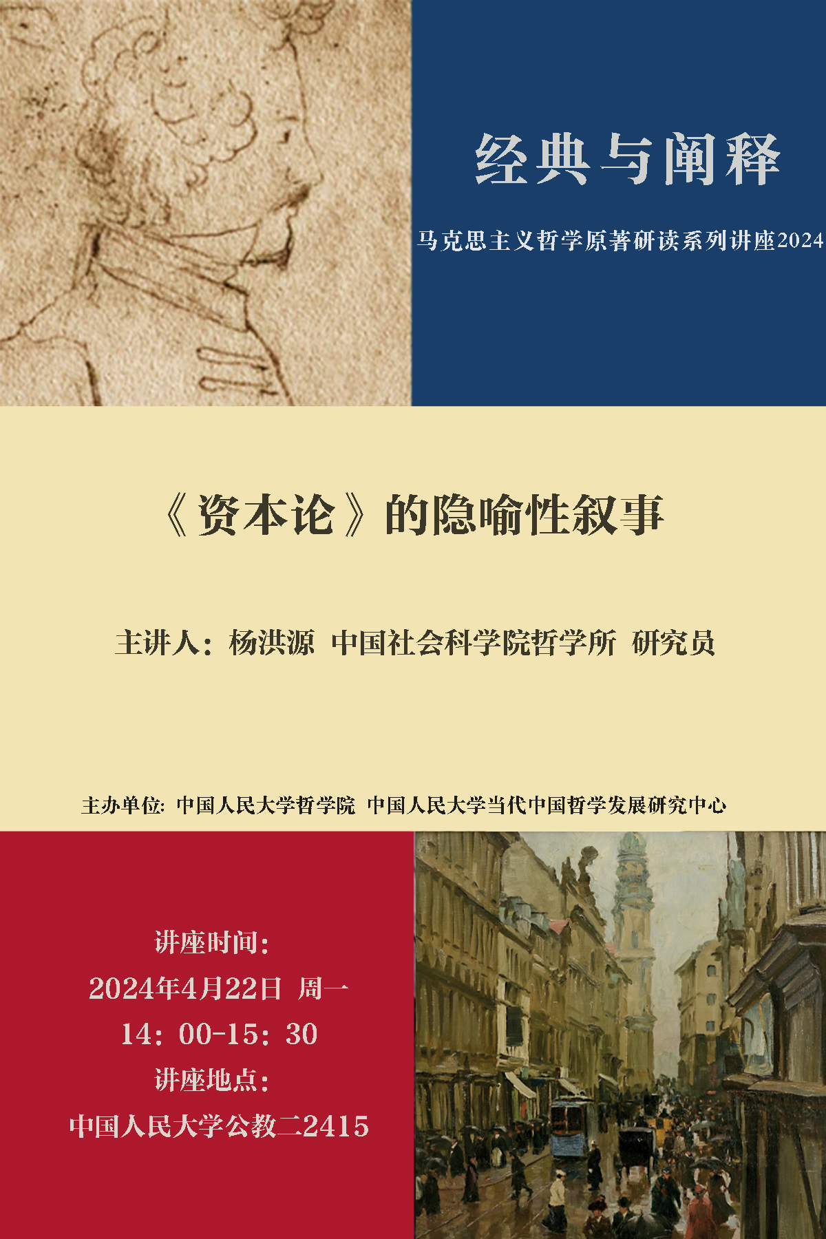 预告 | 杨洪源:《资本论》的隐喻性叙事|经典与阐释:马克思主义哲学原著研读系列讲座