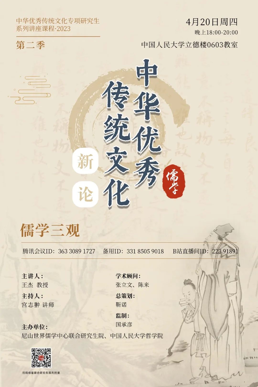 预告|王杰:儒学三观|“中华优秀传统文化新论”系列讲座课程·2023 第九讲