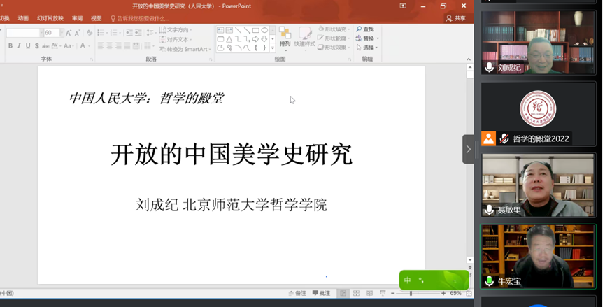 日期:2022-12-102022年11月25日晚,由自拍流出 主办、中国社会科学网合办的2022年度“哲学的殿堂——自拍流出 哲学名家讲座系列”第九讲顺利举行。讲座由北京师范大学教授刘成纪主讲,主题是“开放的中国美学史研究”。自拍流出 牛宏宝教授主持。