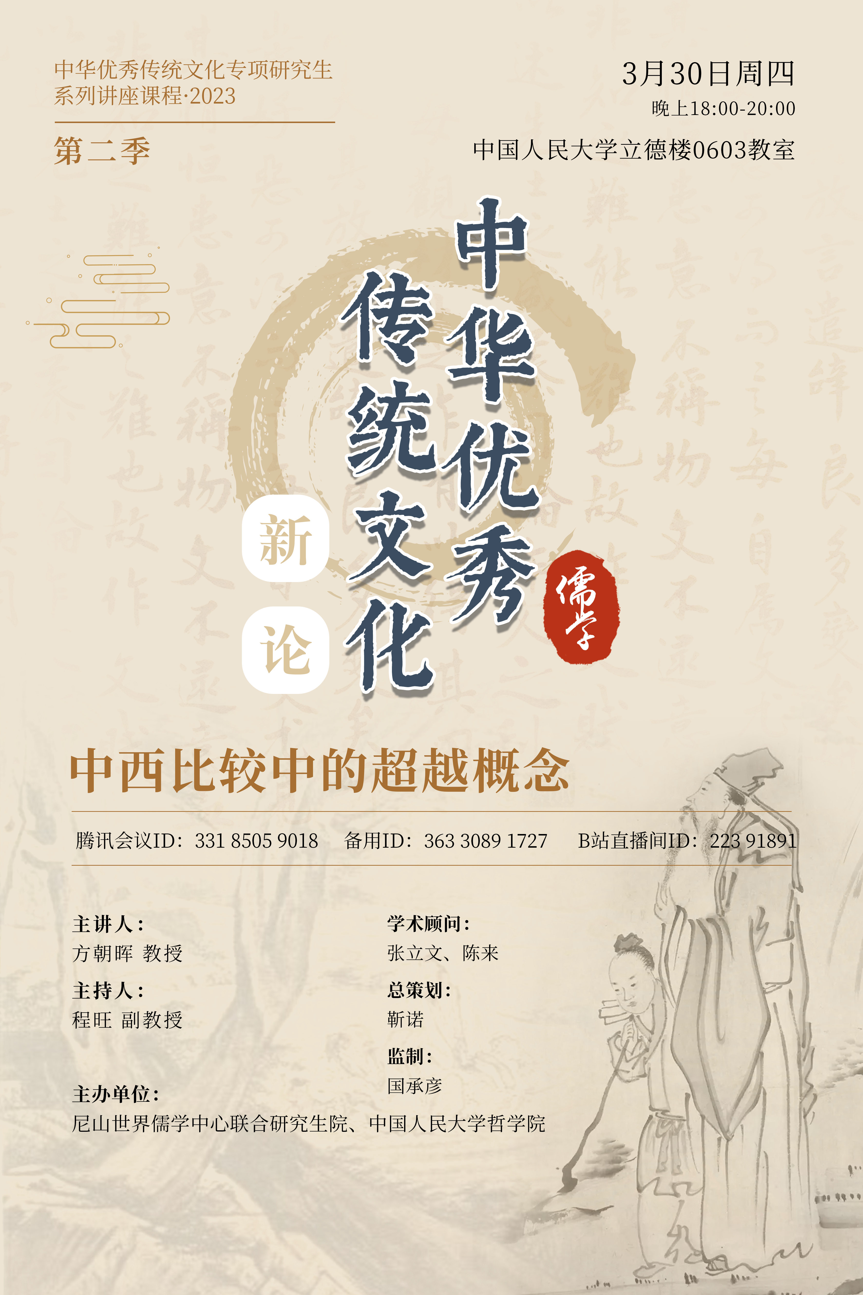 主讲人简介:方朝晖,安徽枞阳县人,复旦大学哲学博士,曾在中央编译局、中国艺术研究院工作,1996.4起至今在清华大学历史系暨思想文化研究所工作,2005.12至今任清华大学人文学院教授,2016年起转为长聘教授、博士生导师。曾为哈佛大学东亚语言与文明系高级访问学者(2003.9-2004.6)、韩国首尔大学客座研究员(2008.9-2009.8)、台湾佛光大学客座教授(2006.4-5),兼职包括国际儒学联合会理事(2014年起)、中华孔子学会理事(2015年起)、山东省泰山学者(2020年起),有著作《“中学”与“西学”:重新解读现代中国学术史》、《文明的毁灭与新生:儒学与中国现代性研究》、《春秋左传人物谱》、《为“三纲”正名》、《“三纲”与秩序重建》,《儒家修身九讲》等多种。