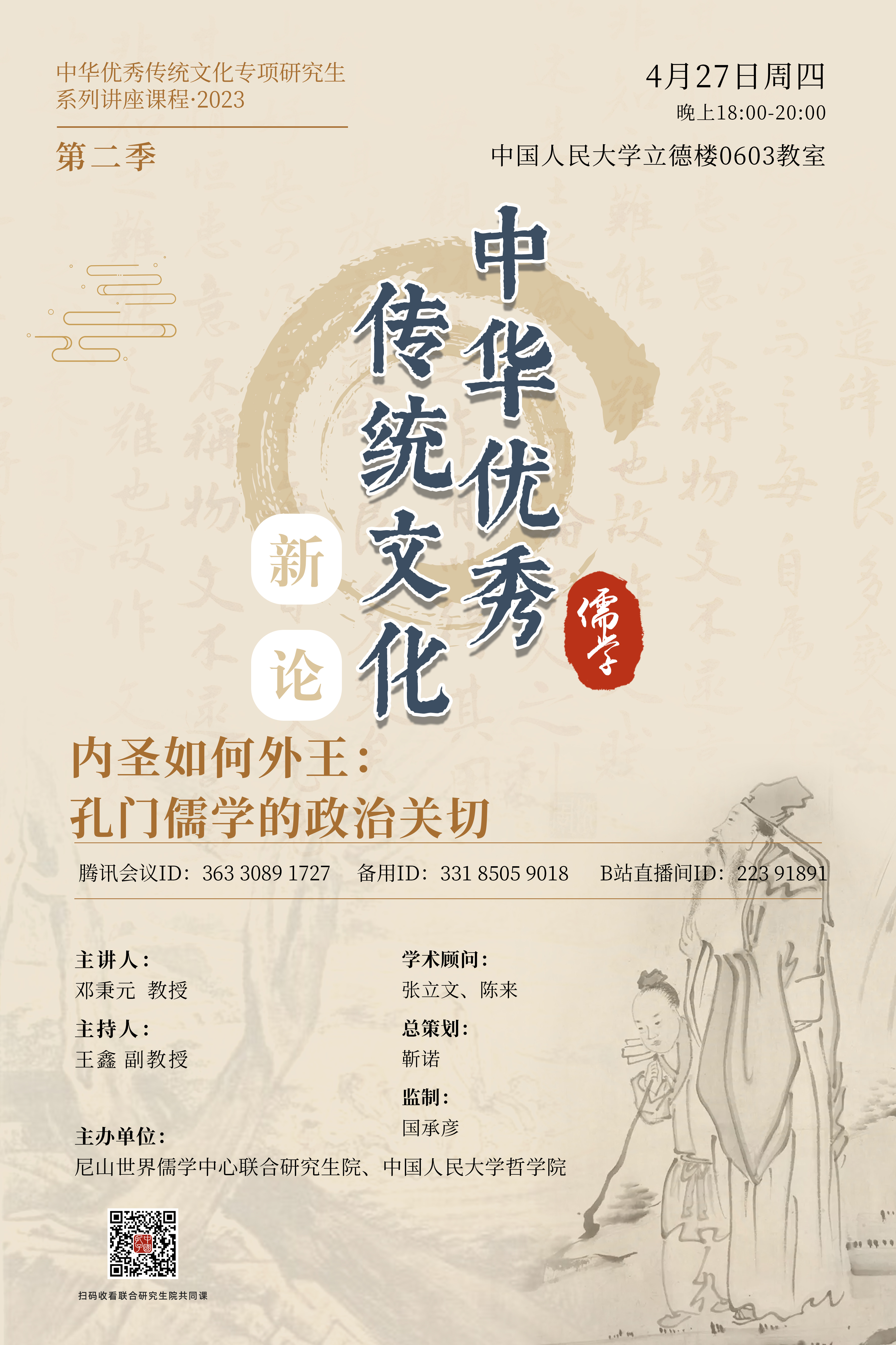 预告|邓秉元:内圣如何外王:孔门儒学的政治关切|“中华优秀传统文化新论”系列讲座课程·2023 第十讲