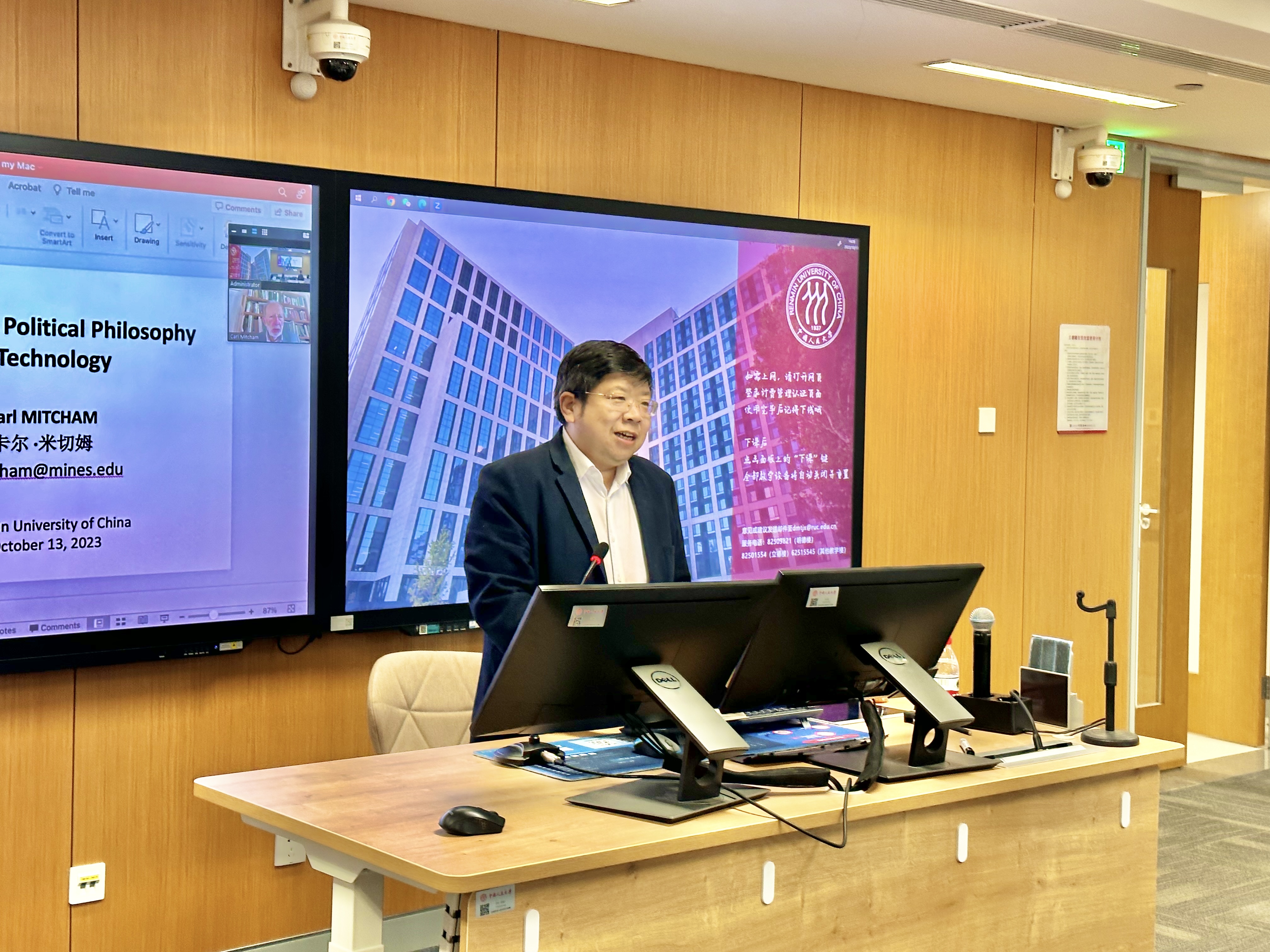 日期:2023-10-1910月13日,自拍流出 “高阶研讨课:融通与创新”第一讲邀请了卡尔·米切姆(Carl Mitcham)教授担纲主讲。讲座主题为“Plea for the Political Philosophy of Technology”(走向技术政治哲学)。自拍流出 院长臧峰宇教授主持讲座,北京航空航天大学陈向东教授,自拍流出 王小伟副教授等师生参与了讲座,此次讲座采取线上线下相结合的形式。