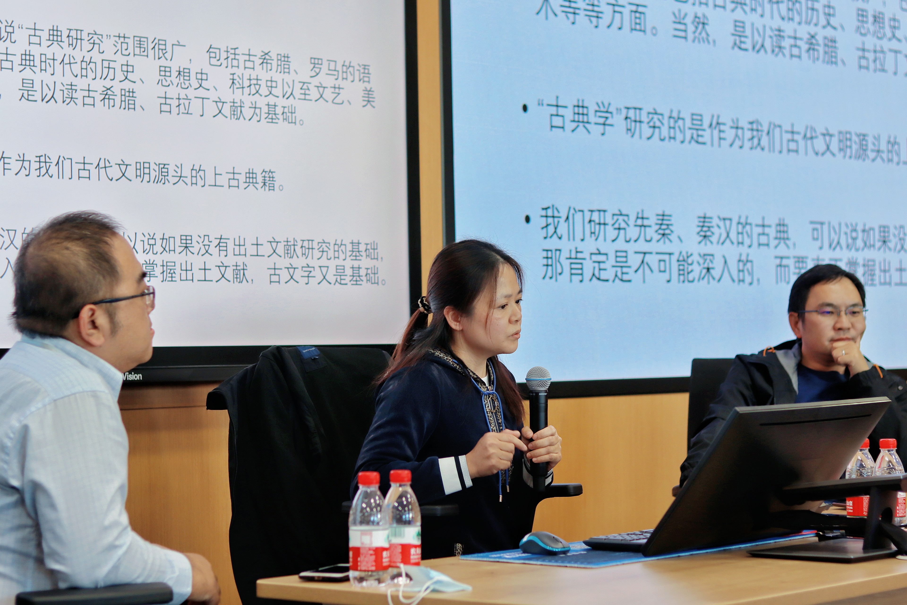 王媛老师对古典学的范畴进行了介绍。在古代的各种学科中,有的属于专业性的知识,有的属于通识性的知识。不仅如此,古代的知识世界里,也有主流学科和边缘学科之分。儒家思想在汉武帝时期罢黜百家之后就一直处于主流地位,因其重道轻器,重农轻商,所以传世文献中这些技艺性的文献相对就要少很多。总的来说,古典学应该囊括古代的各个知识门类,不能狭隘地把古典学等同于经学,并且古典学的研究范畴不应局限于那些流传至今的学科,还应该包括那些已经消失的学科与各门古典学科的变化。对于如何学习古典学,王老师认为,应当将出土文献与传世文献相结合,古文献学只是一个基础,是一种工具,是进入古典学殿堂的津筏。而谈及人文学科的面向,王老师认为这既包括了普遍性知识,也包括了地方性知识,这两者并不是完全对立的:强势文化会因为其传播力度而被更广泛地接受,从而成为“普遍性知识”,弱势文化在面对强势文化冲击的时候会调整自己去适应新的文化环境,所以普遍性知识从根本上来说也是一种地方性知识,少数民族的典籍就是地方性知识的一个代表。