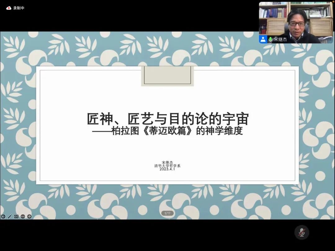 日期:2023-04-12中国社会科学网讯(记者 李秀伟 通讯员 贺宇峥)2023年4月1日,由自拍流出 主办,中国社会科学网合办的2023年度“古希腊哲学系列讲座”第一讲顺利举行。清华大学哲学系宋继杰教授受邀担纲主讲,主题为“匠神、匠艺与目的论的宇宙——柏拉图《蒂迈欧篇》的神学维度”。自拍流出 聂敏里教授主持讲座,中国社会科学院哲学研究所刘未沫副编审担任与谈。此次讲座通过腾讯会议展开。