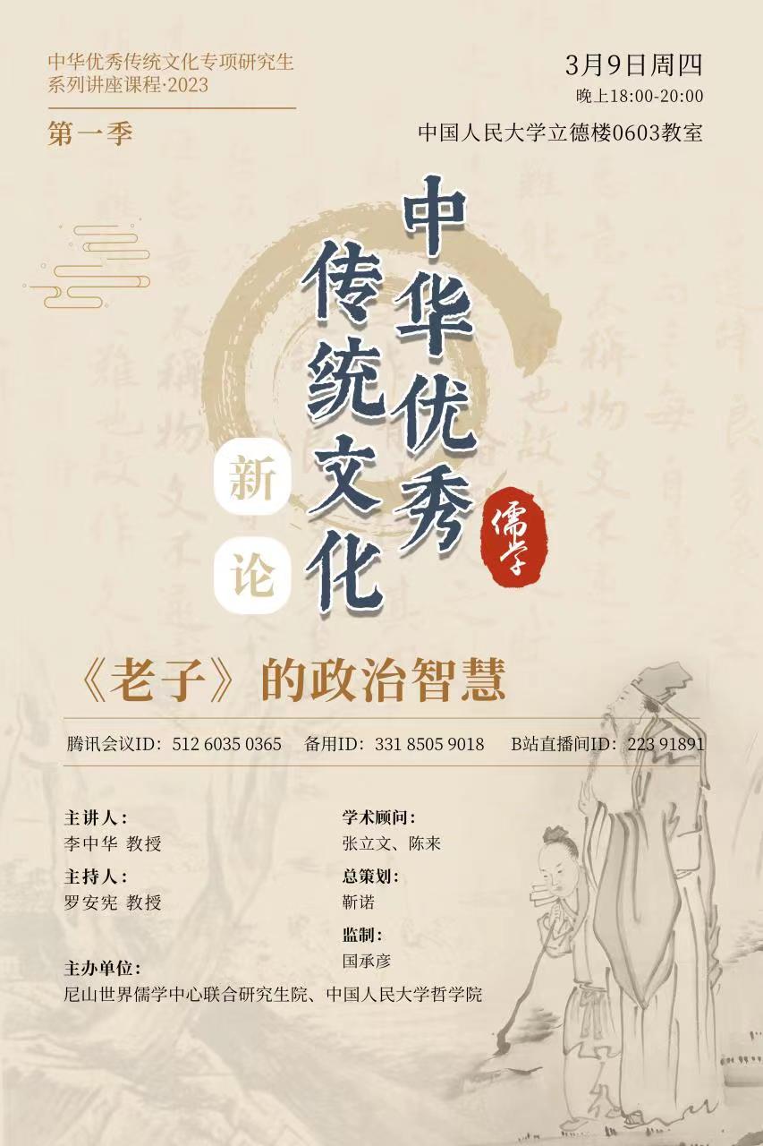 预告|李中华:《老子》的政治智慧|“中华优秀传统文化新论”系列讲座课程·2023 第三讲