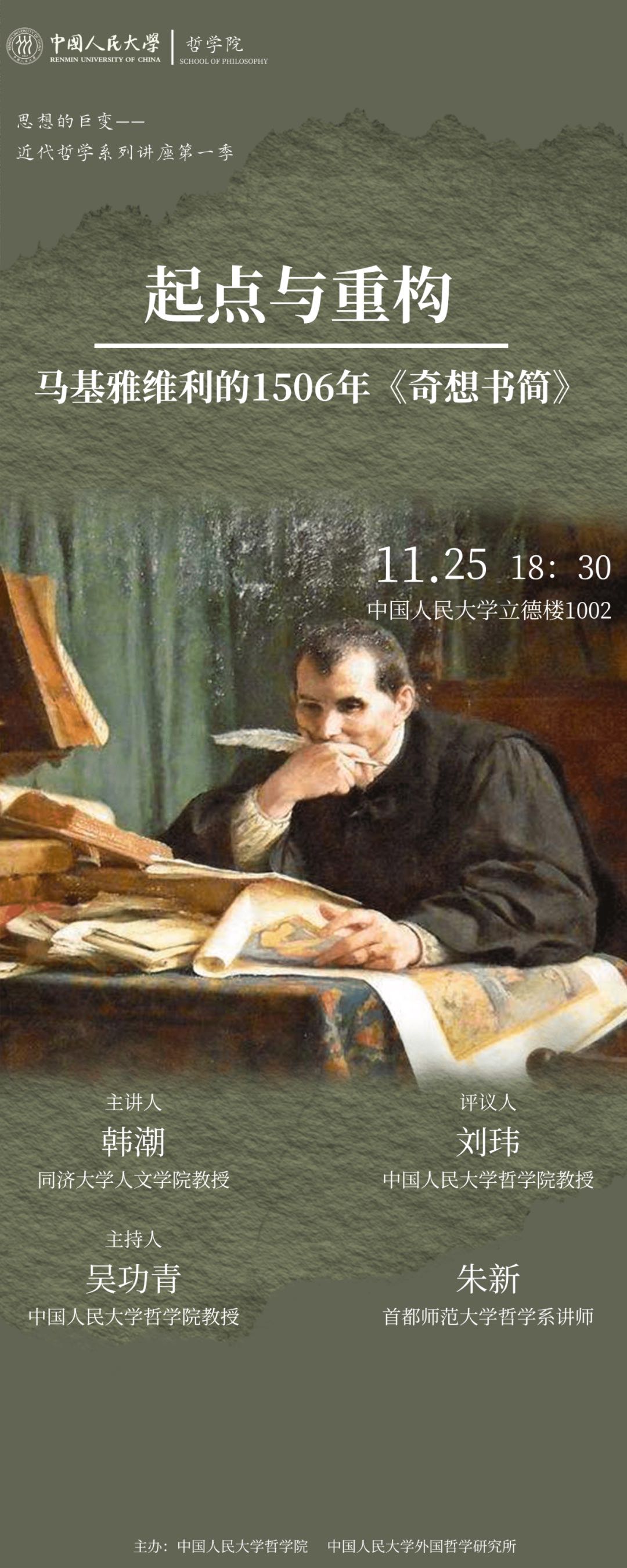 预告丨近代哲学系列讲座(六)丨韩潮:起点与重构:马基雅维利的1506年《奇想书简》