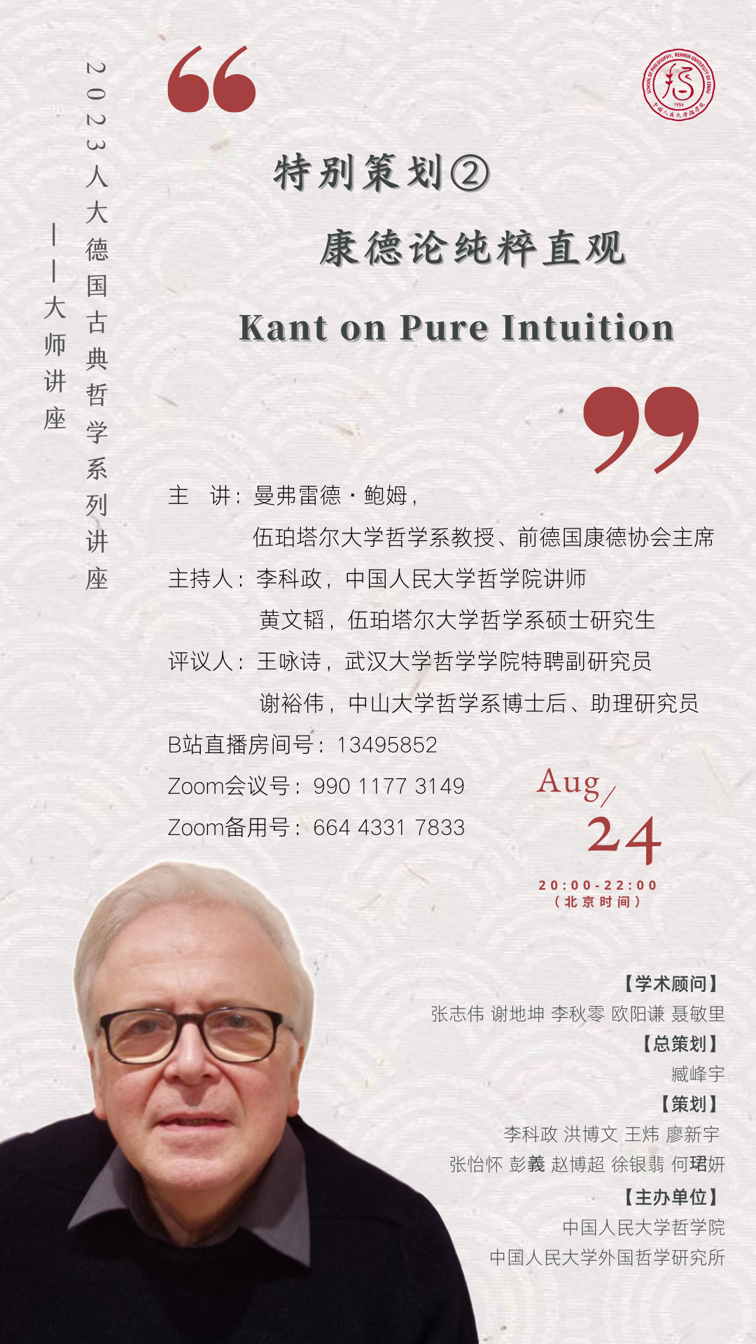 预告:2023人大德国古典哲学系列讲座——大师讲座 特别策划②:康德论纯粹直观