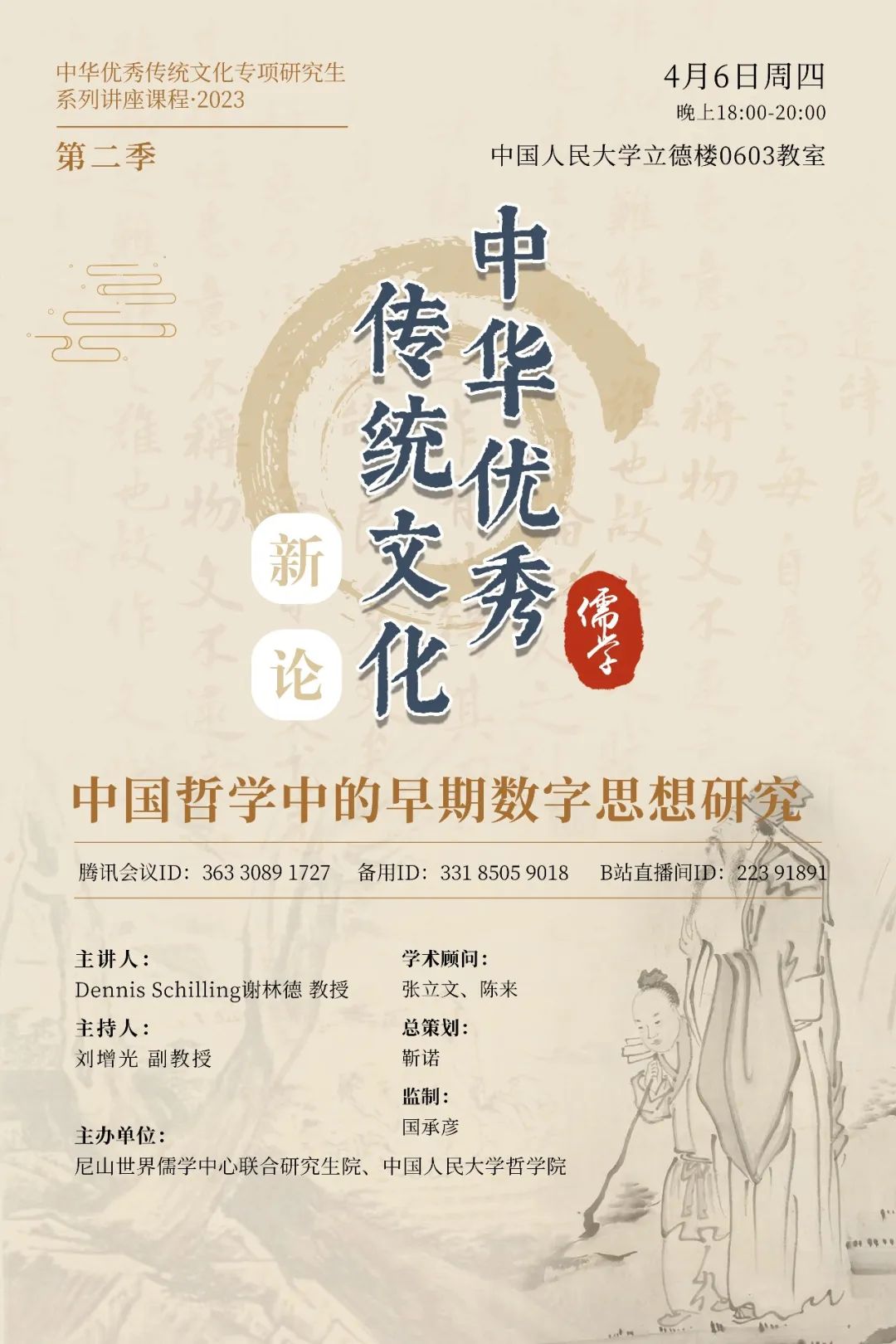 预告|谢林德:中国哲学中的早期数字思想研究|“中华优秀传统文化新论”系列讲座课程·2023 第七讲