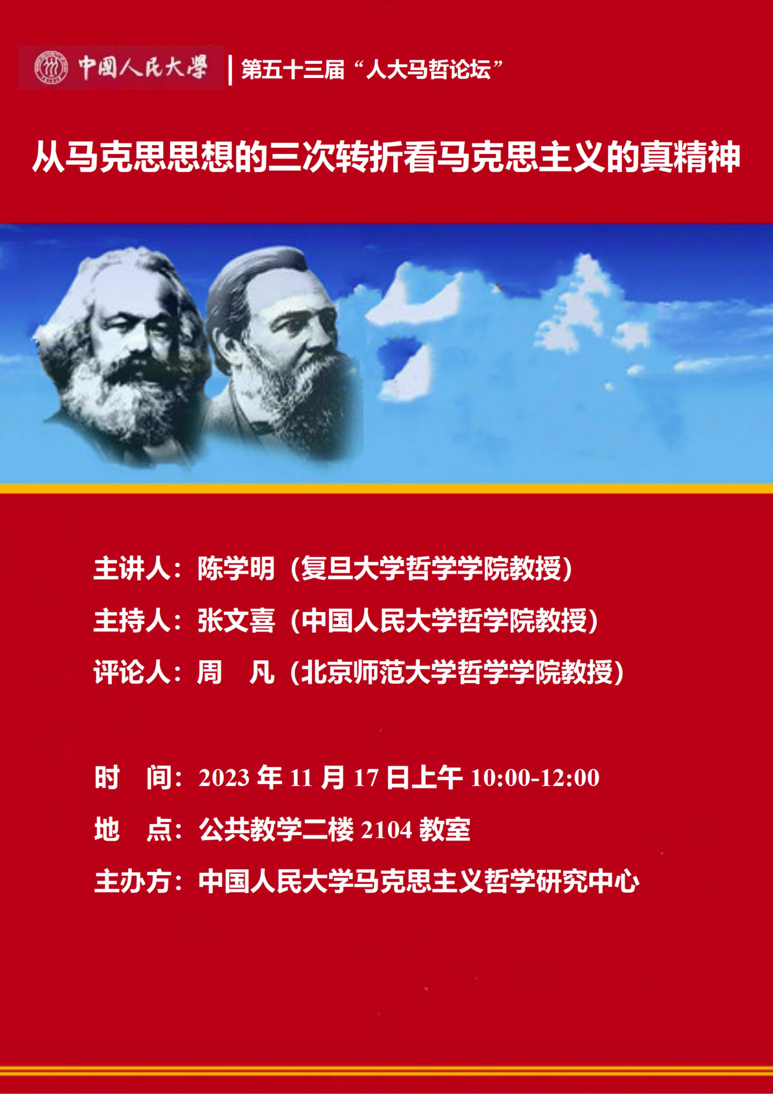 预告|从马克思思想的三次转折看马克思主义的真精神|第五十三届“人大马哲论坛”