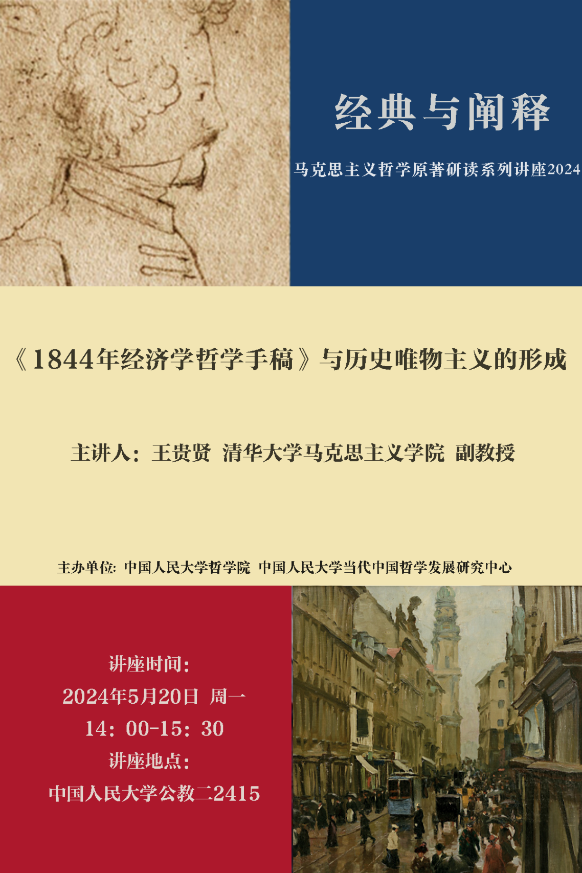 预告 | 王贵贤:《1844年经济学哲学手稿》与历史唯物主义的形成|经典与阐释:马克思主义哲学原著研读系列讲座