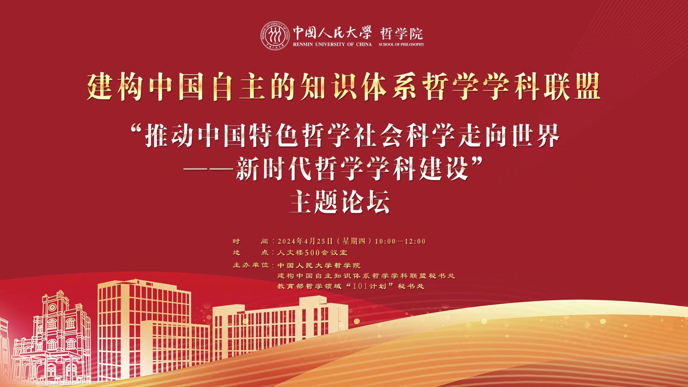 会议预告丨“推动中国特色哲学社会科学走向世界 ——新时代哲学学科建设” 主题论坛