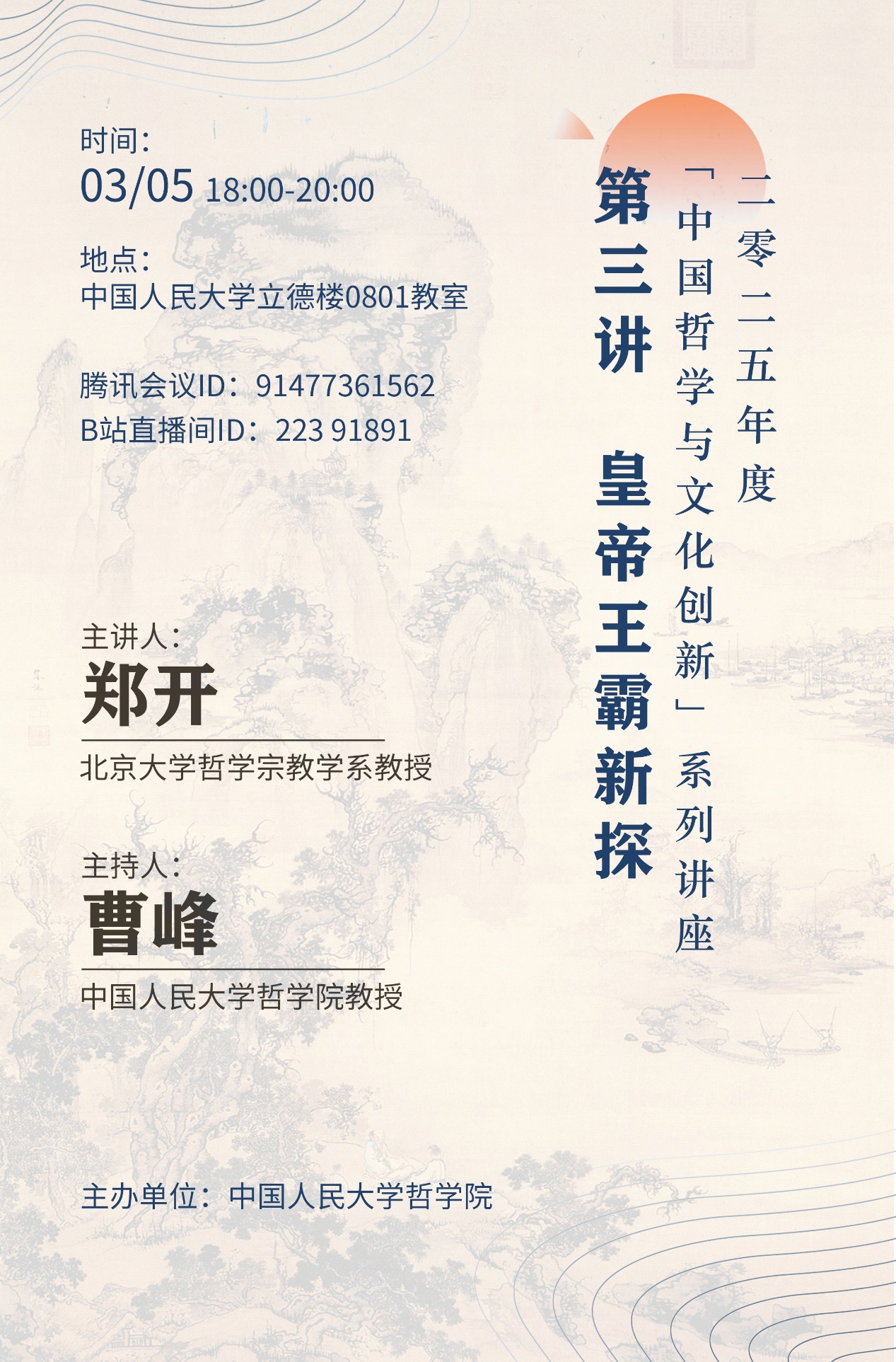 第三讲:皇帝王霸新探丨2025年度“中国哲学与文化创新”系列讲座