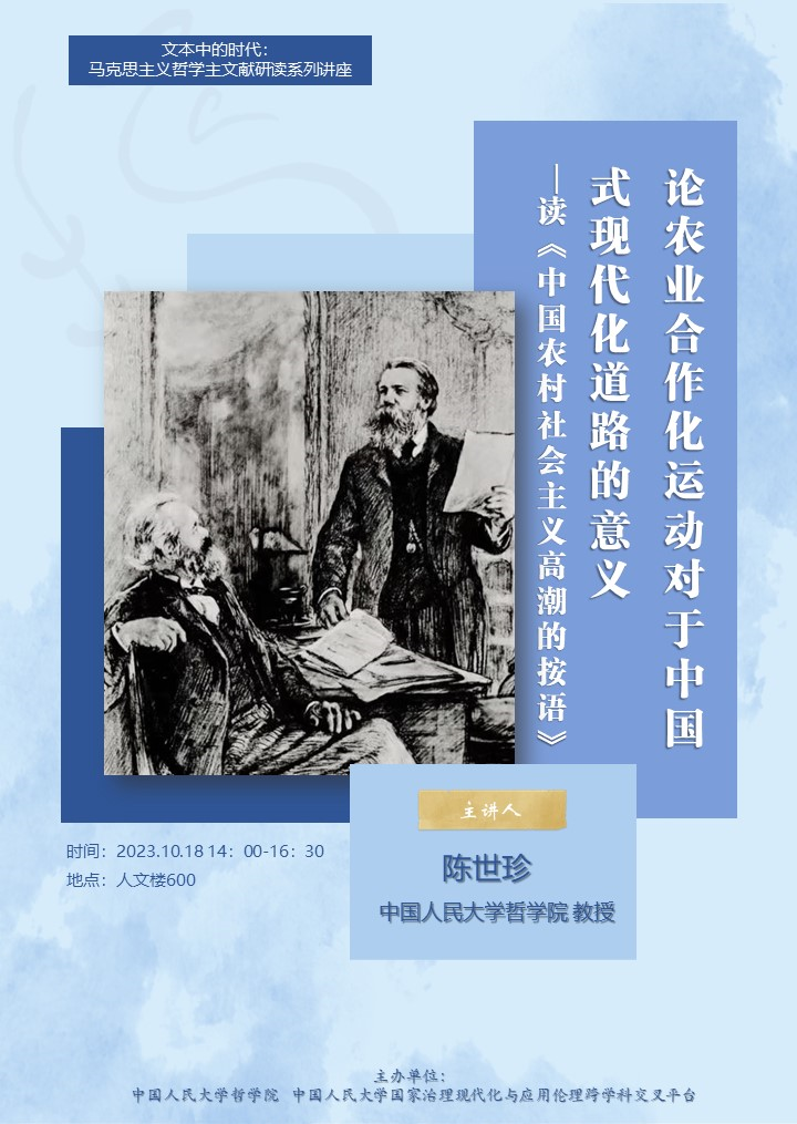 预告 | 陈世珍:论农业合作化运动对于中国式现代化道路的意义—读《中国农村社会主义高潮的按语》| 文本中的时代:马克思主义哲学主文献研读系列讲座