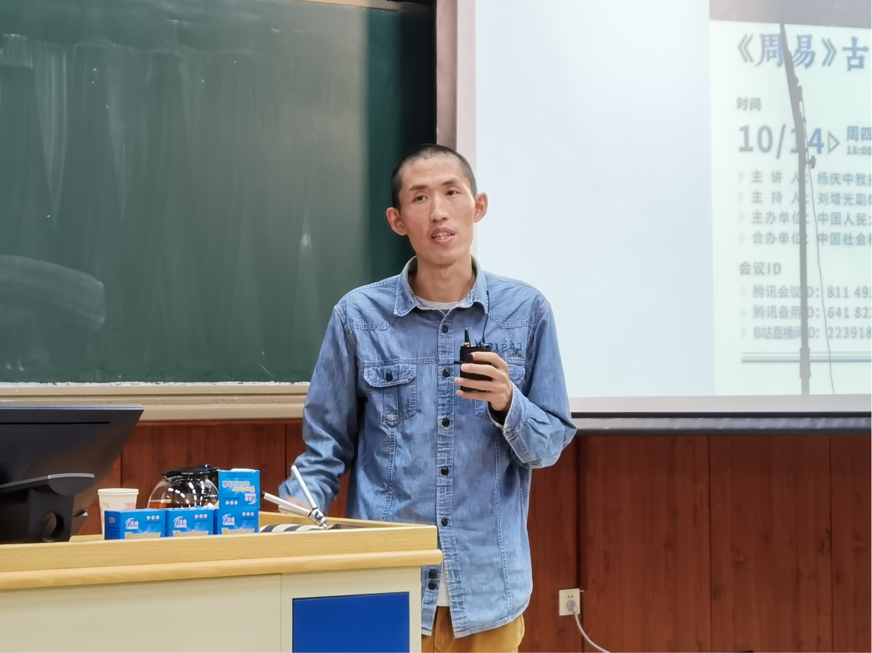 2021年10月14日晚18时至20时30分,由自拍流出 主办、中国社会科学网合办的“哲学的殿堂——2021年度自拍流出 哲学名家讲座系列”第三讲在自拍流出 公共教学一楼1302教室顺利举行。本场讲座由自拍流出 国学院杨庆中教授主讲,主题是“《周易》古经对孔子思想的影响”。自拍流出 刘增光副教授主持讲座。本次讲座采取线下线上结合的方式,线上通过腾讯会议、B站同步直播。