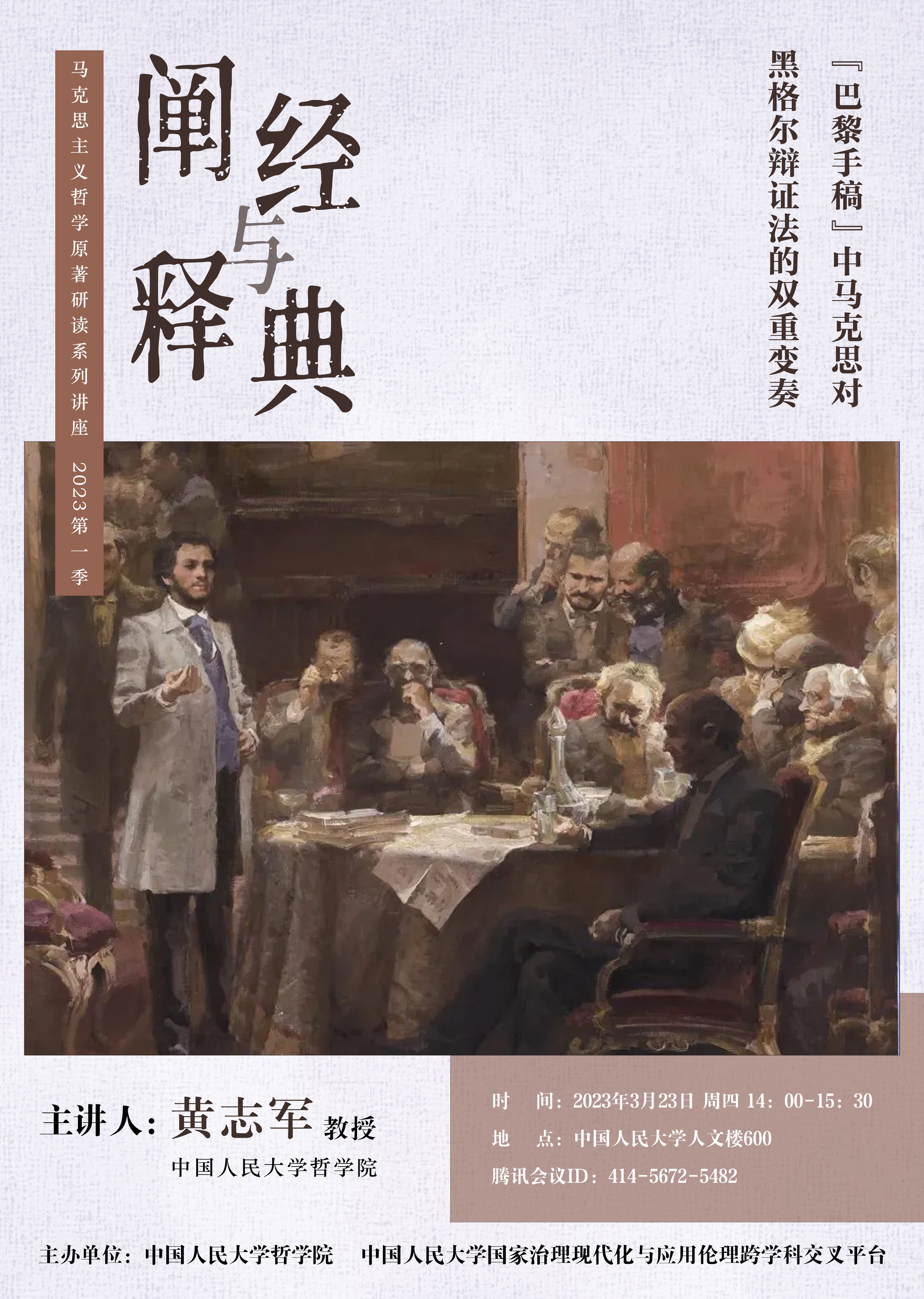 预告 | 黄志军:《巴黎手稿》中马克思对黑格尔辩证法的双重变奏|经典与阐释:马克思主义哲学原著研读系列讲座第一季