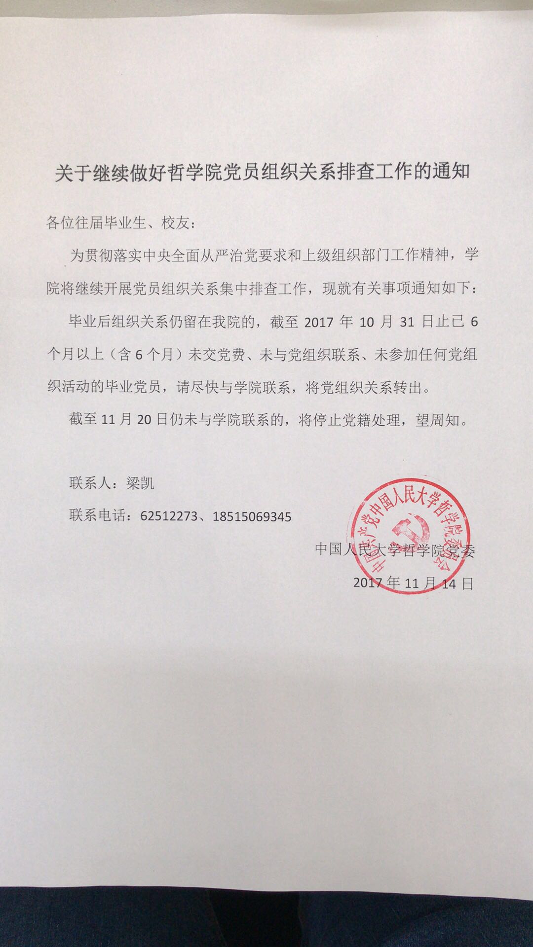 截至11月20日仍未与学院联系的,将停止党籍处理,望周知。