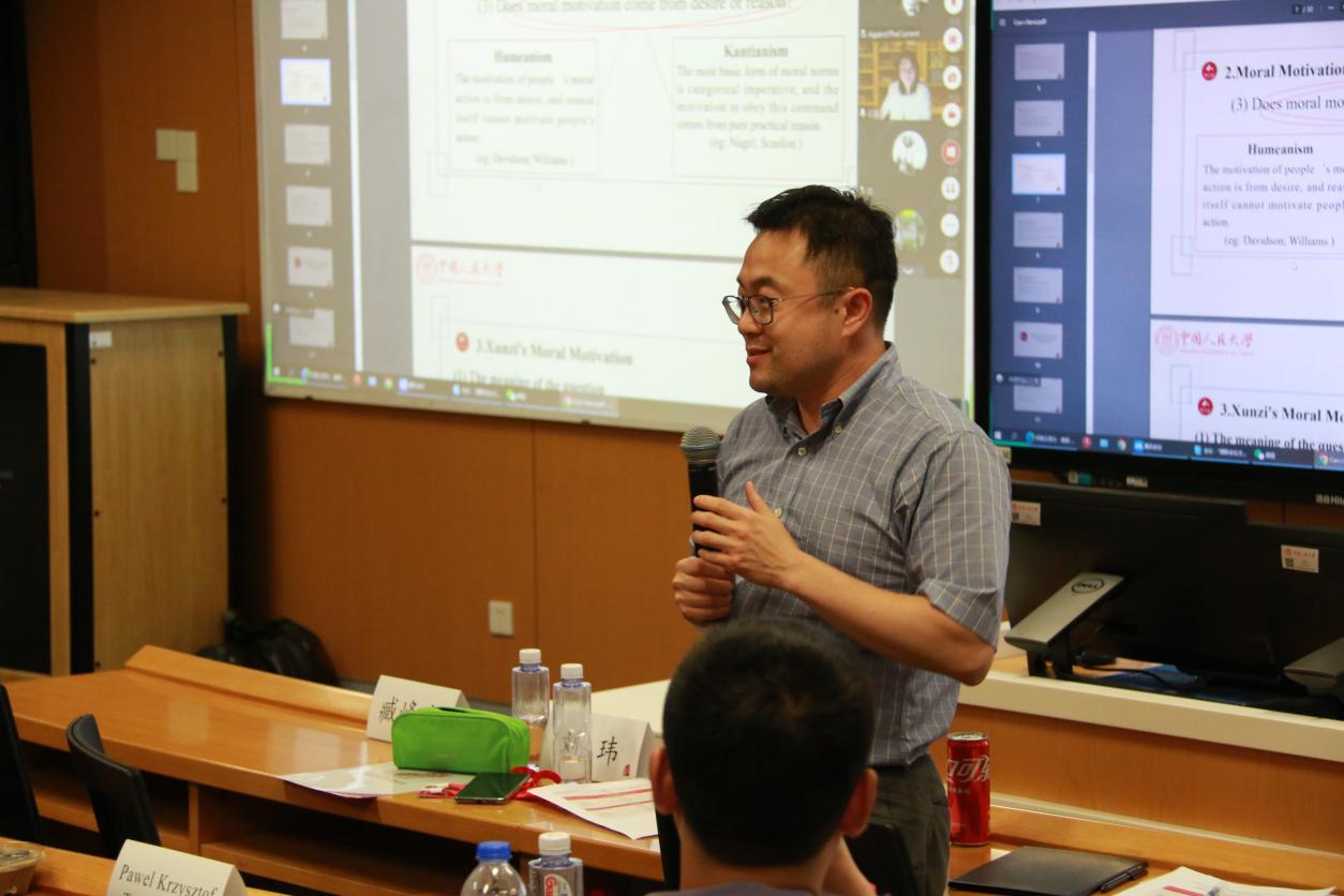 日期:2023-08-01探索古代思想,融通中外文化,自拍流出 首届“创新的前沿:博士研究生国际学术研讨会”自拍流出 分会场“古代哲学与文明交流互鉴”于自拍流出 立德楼502教室举行。本次哲学分会场共举行5场报告会,10位来自自拍流出 和北京大学、清华大学、牛津大学、普林斯顿大学、慕尼黑大学、哥伦比亚大学的优秀博士生在研讨会上分享了他们在古代哲学与跨文化交流领域的最新研究成果。