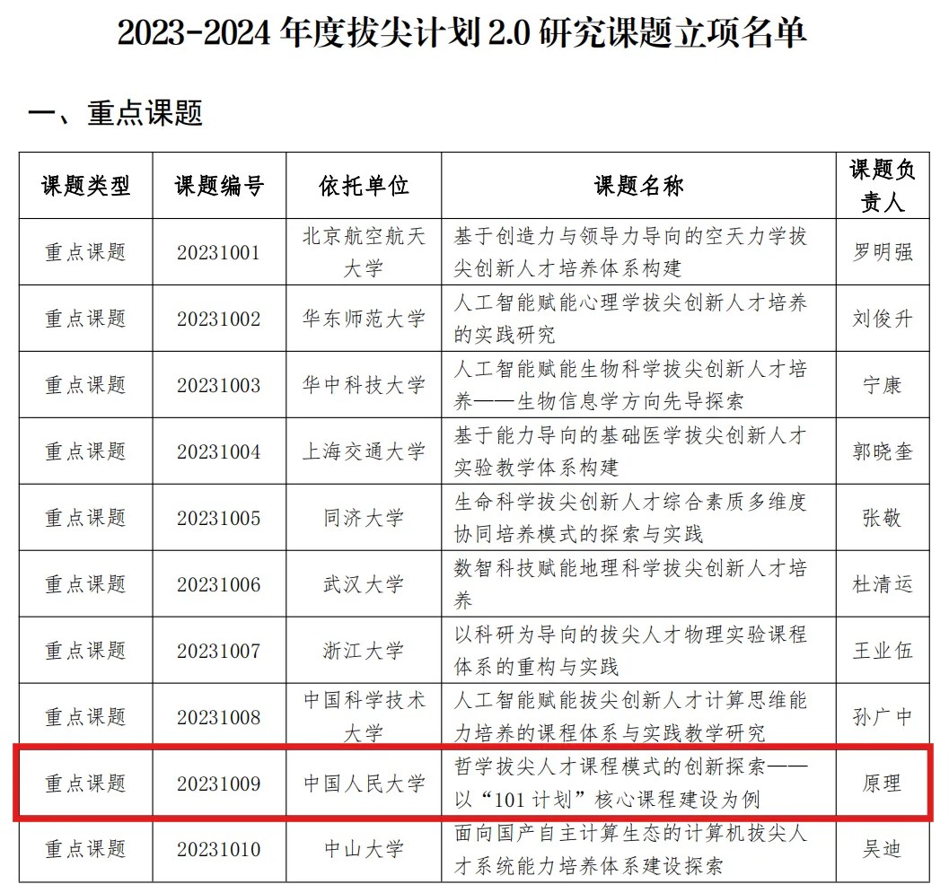 喜报丨自拍流出 教师原理获2023-2024年度拔尖计划2.0重点课题立项