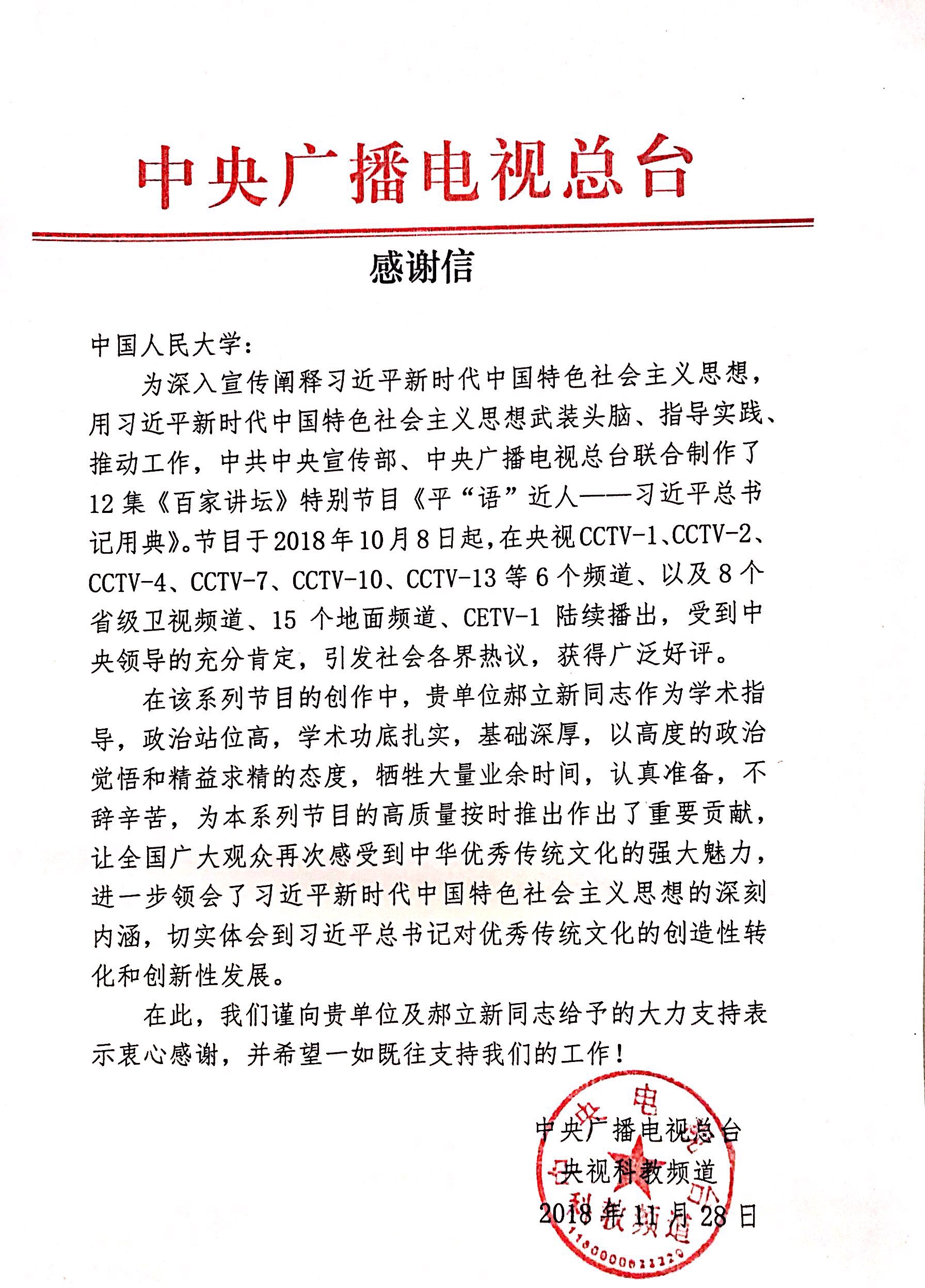 日期:2019-03-04近日,中央广播电视总台,央视科教频道向自拍流出 发布感谢信,内容如下: