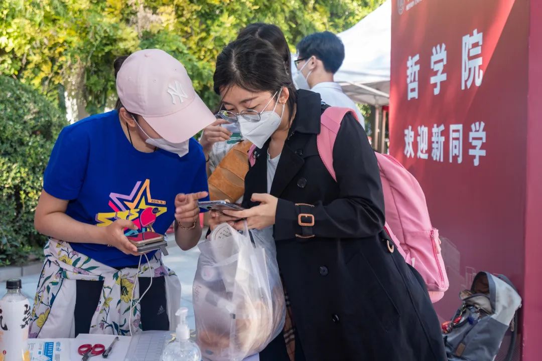 在学院负责老师的带领下,迎新志愿者们分工明确,相互协作。志愿者们首先对新生的身份进行核验,在扫描新生passport后,为同学们发放一卡通和各类校园生活指南,以及学院精心准备的赠书和纪念品等。他们为新生答疑解惑,帮助同学们处理入学事宜,用洋溢的笑容、暖心的关怀为新同学保驾护航。