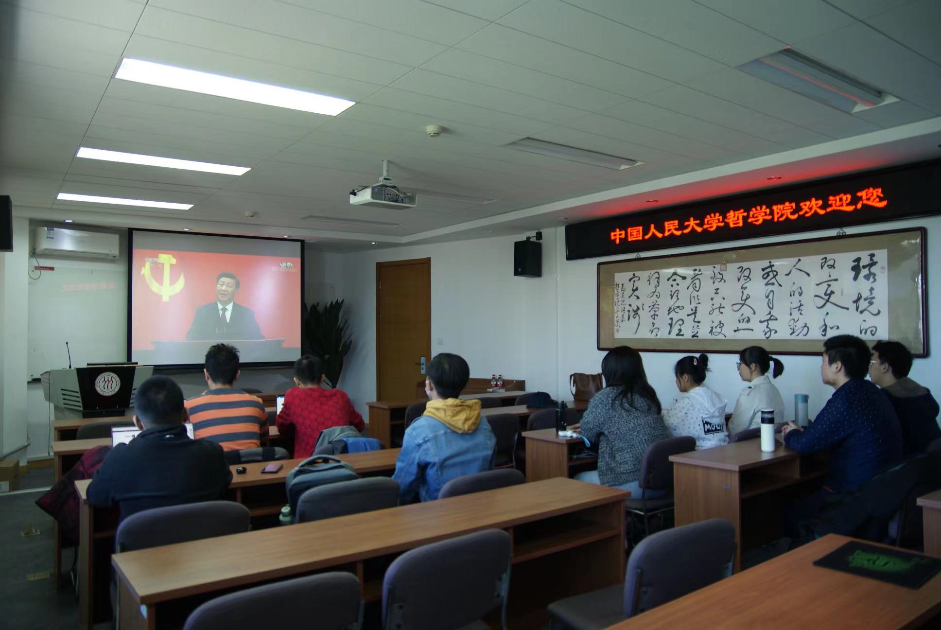 10月23日中午,在中国共产党第二十届中央委员会第一次全体会议上当选的中共中央政治局常委同采访中共二十大的中外记者见面。习近平总书记发表重要讲话。哲学院领导班子成员、党委委员、各党支部党员代表在人文楼500会议室集体观看。各党支部、班级、团支部通过线上、线下等方式收听收看。